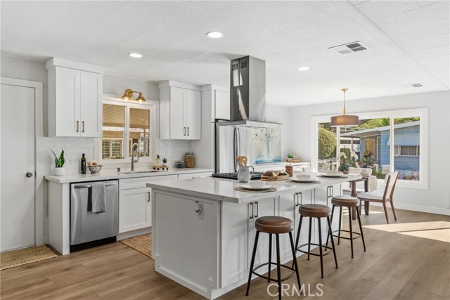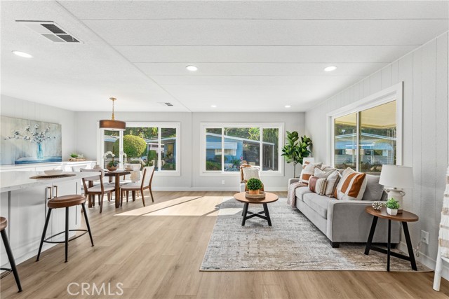 Begin your next chapter in this beautifully updated 2 bedroom, 2 bath home in the sought after 55+ community of Lake Park Yorba Linda. With 1,368 sq. ft. of bright, open living space, the remodeled chef’s kitchen showcases quartz counters, new soft-close cabinetry, a designer tile backsplash, stainless appliances, pendant and recessed lighting, and a large elegant island perfect for casual meals or entertaining. The floor plan flows from a welcoming living area to a defined dining space, separate family room and a versatile den ideal for a TV room or formal dining. Thoughtful updates include new dual-pane windows, luxury vinyl plank flooring, fresh interior and exterior paint, and 4.5" baseboards throughout. The primary suite is a tranquil retreat with new flooring, dual closets, recessed lighting and a fully renovated en-suite with a spa like walk-in shower, while the second bedroom is ready for guests or a home office. Enjoy mornings or evenings on the covered front porch year-round. Practical comforts include an indoor laundry nook, two-car carport, new water heater, new storage shed, New PEX plumbing throughout, and 22 new piers installed and newly leveled ensuring the home is in excellent condition. Beyond your doorstep, Lake Park offers resort style living with a sparkling pool, clubhouse with billiards and library, and an active, welcoming community. This turnkey home invites you to move in, relax, and embrace the lifestyle. Come see it in person and imagine the possibilities.