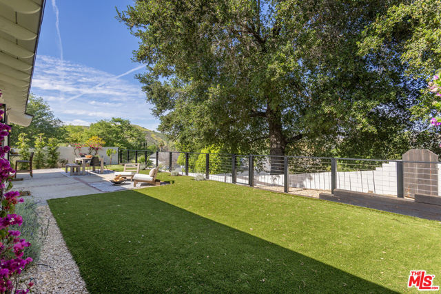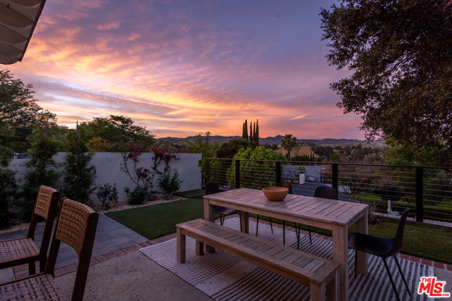 OFFERS DUE MONDAY 3/30 BY 5PM. Located on one of the most coveted streets in Agoura Hills' Hillrise neighborhood, this beautifully reimagined one story Spanish-style residence offers sweeping west-facing views and unforgettable sunset moments. Located on prestigious Deep Shadow Drive, the home captures the essence of California living, where rolling hills meet golden-hour skies. Fully remodeled from top to bottom, this 4BD, 2BA residence spans approximately 1,650SF and showcases thoughtful upgrades throughout, including a new kitchen, new bathrooms, updated roof, 200-amp electrical, central HVAC, new flooring, fresh paint, and refined finishes at every turn. A spacious living room with vaulted ceilings and a statement fireplace welcomes you in, seamlessly flowing into a stunning chef's kitchen open to the dining, designed for both everyday living and entertaining. Outfitted with custom cabinetry, expansive counter space, and top-of-the-line appliances, the kitchen is anchored by a picturesque window framing serene hillside views, bringing the outdoors in with beautiful natural light. The indoor-outdoor connection continues as the kitchen opens directly to your private backyard retreat. Here, you'll find drought-conscious landscaping featuring bougainvillea, lavender, podocarpus and brand new fencing for privacy, complemented by premium AstroTurf and ample space to add a pool. Whether dining al fresco or unwinding at sunset, this backyard is designed for effortless California living. The primary suite showcases a double-door entry, walk in closet, and an ensuite bath featuring a dual-sink vanity and beautiful shower with luxury finishes. Three additional generously sized bedrooms are filled with natural light and greenery, accompanied by a spacious secondary bathroom with dual sinks and a soaking tub. Additional highlights a two-car garage, abundant storage, washer and dryer, recessed lighting, plantation shutters, new doors, updated molding, and newly installed hardscape and landscaping. Ideally positioned between Calabasas and Westlake Village, Agoura Hills offers top-rated schools, amazing hikes, scenic surroundings, and a lifestyle of convenience at an exceptional value.