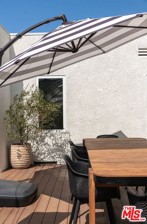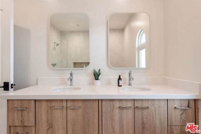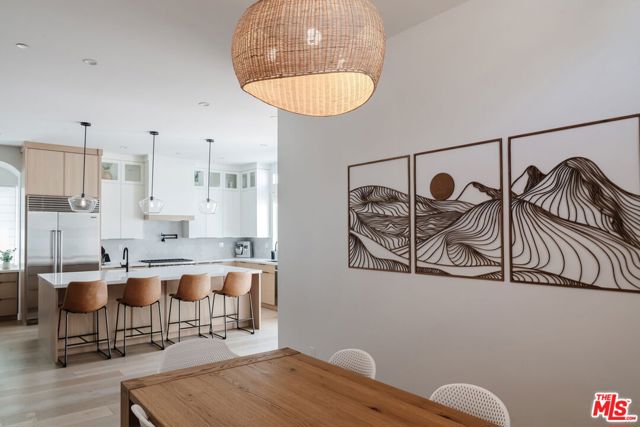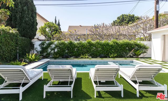 Beautifully reimagined in 2024 and set on one of Culver City's most desirable streets, this contemporary Mediterranean residence offers a two-level, four-bedroom, two-and-a-half-bath main home, complemented by a detached one-bedroom, one-bath guest house with its own private street entrance, as well as a resort-style backyard with a heated pool and spa. Designed for seamless indoor-outdoor California living, the backyard is an entertainer's retreat - featuring a dining deck, fire pit lounge, built-in BBQ, and a pool and spa with Baja shelf, electric pool cover, and advanced salt, ozone, and UV filtration. The main home showcases an open-concept layout with soaring ceilings, white oak flooring, and a wood-and-gas fireplace. The kitchen is both refined and functional, with floor-to-ceiling cabinetry, Wolf and Sub-Zero appliances, a walk-in pantry, and an oversized island that flows effortlessly into the dining area. Sliding glass doors open directly to the backyard, creating a true indoor-outdoor experience. The first floor also includes a powder room, a flexible bedroom or office, and a game room with its own private staircase. Upstairs, you'll find two well-appointed bedrooms with reach-in closets, a dual-sink full bath, and a spacious primary suite featuring a walk-in closet and a spa-inspired bathroom with a soaking tub, oversized shower, and separate water closet. A laundry room with built-in cabinetry completes the upper level. The detached guest house offers a living area with kitchenette, a bedroom with a built-in desk, a full bath, and two mini-split systems. With its private street entrance and direct backyard access, it's ideal for rental income, guests, or a dedicated workspace. Located just moments from Culver City's vibrant restaurant row and The Culver Steps, this home delivers elevated living in one of Los Angeles' most sought-after neighborhoods.