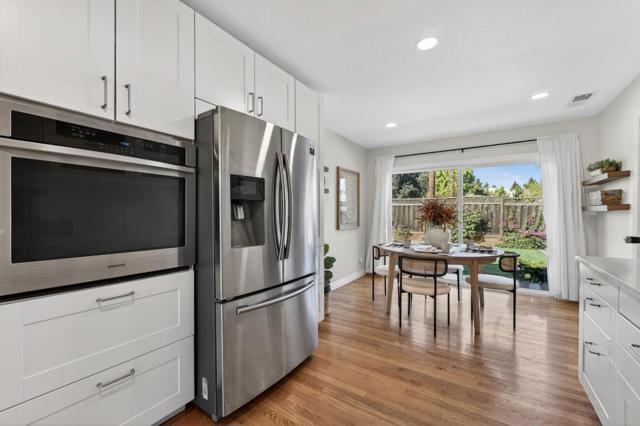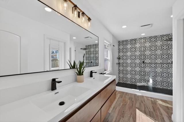 Fully remodeled inside and out in 2022, this beautifully updated Rose Glen home offers nearly 1,600 sq ft of thoughtfully designed living space with 3 bedrooms, 2 1/2 baths, and a 2-car garage. Renovations were completed with permits and feature gorgeous hardwood floors, new windows, and a finished garage that provides excellent bonus space for a gym, playroom, or workspace. The spacious primary suite features a cathedral ceiling, a large walk-in closet, and a well-appointed bathroom. The home's layout is ideal for both daily living and entertaining, with the kitchen overlooking the backyard for easy indoor-outdoor connection. The newly designed backyard includes a covered patio and lawn, creating a perfect setting for outdoor dining, celebrations, and gatherings. The open flow between the home and yard makes hosting effortless. Located in a quiet neighborhood with minimal traffic, the home enjoys a strong sense of community with friendly neighbors and regular neighborhood gatherings. Two nearby parks with playgrounds are within walking distance, offering easy access to outdoor recreation. While peaceful and tucked away, the location provides quick access to Willow Glen, Rose Garden, Santana Row and Campbell. A truly convenient point for commuting throughout Santa Clara county.