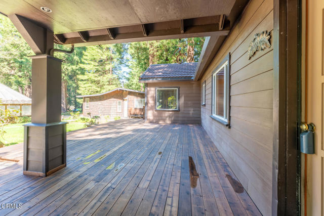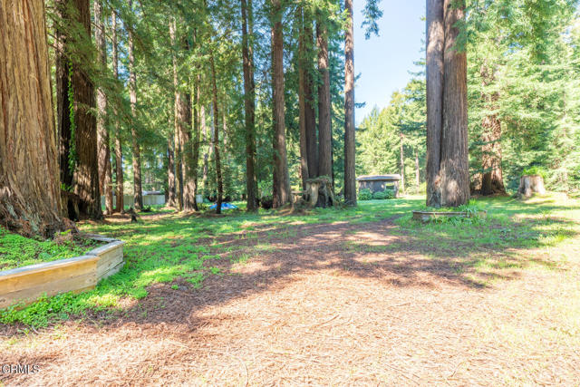 Redwood hideaway near town.. Parklike setting. 1947 classic home with upgrades and a guest unit. Huge green house, basketball court or patio, outbuildings. Same owner for years first time on the market. Main home is two bedroom one bath.
