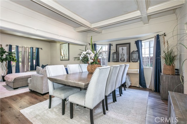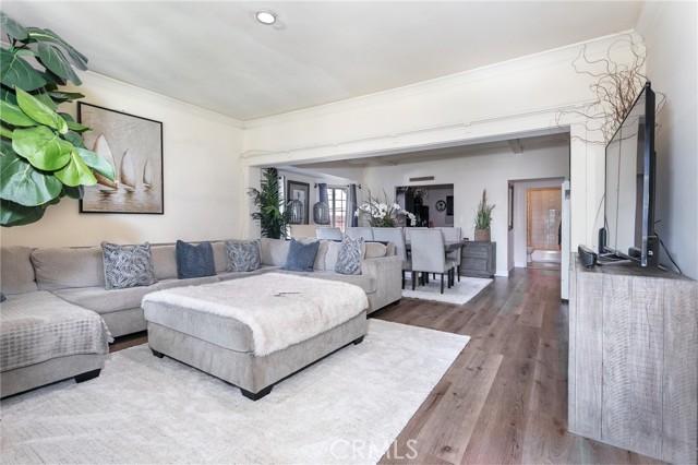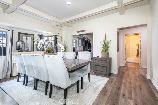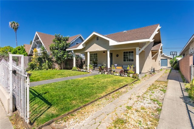 Great value for a oversized lot -- almost 7500 square feet! Many upgrades also inside, including new vinyl flooring and updated kitchen, plus character features like coffered ceilings. Sizable living room and formal dining room flow toward the galley kitchen, which has newer cabinetry and side-by-side washer and dryer. Three bedrooms are spacious, with carpets, and two bathrooms are bright and updated. Tandem parking for multiple vehicles in driveway, a big backyard and garage conversion with bedroom and bath, which allows for additional income, round out this home's many wonderful features. Central location close to freeways and downtown Los Angeles. Perfect for investors in a developing area with strong rents or owner occupant looking for the perfect entry-level house that is fully move-in ready. First-time homebuyer programs available. Inquire with agent. Call for a showing today!