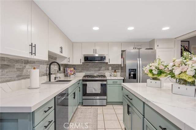 Beautifully updated 4 bedroom and 3 full bath Valencia residence in the Valencia Racquet Club with OWNED SOLAR! This beautiful home is light and bright, offering a fabulous floor plan with 4 large bedrooms, 3 baths tasteful upgrades along with a 2 car garage and lovely backyard! The upgraded kitchen features recessed lighting, quartz countertops, gorgeous center island and timeless upgraded cabinetry! The kitchen opens to the dining room and spacious family room, ideal for entertaining! With 2 primary suites, one on the main level makes this home ideal for multigenerational living! Upstairs you will find 3 more spacious bedrooms and 2 beautifully upgraded bathrooms! The enclosed backyard is wonderful for entertaining and offers plenty of space to enjoy! Just a block away from the community park, sports courts, pool and excellent schools! With Low HOA and NO Mello Roos, this is a home you will cherish for years to come!