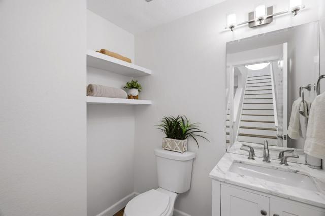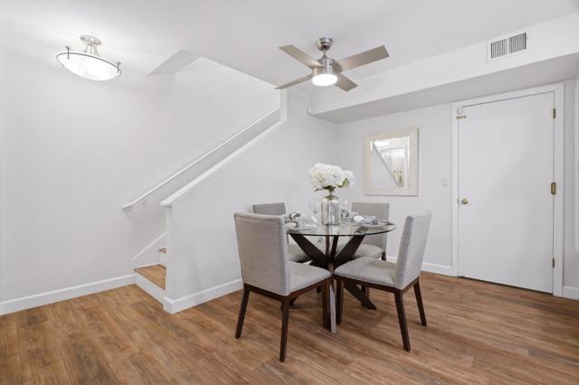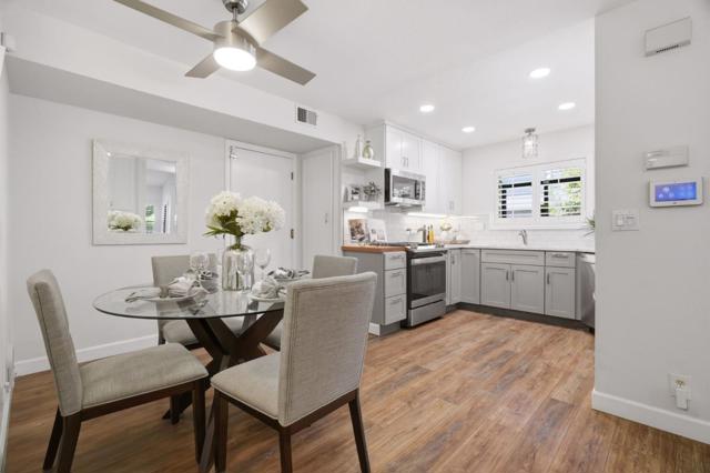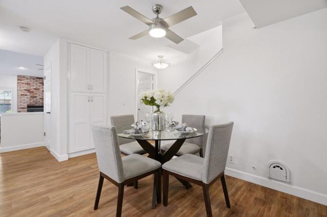 Stunning, turn-key end-unit townhome in Campbell that truly lives like a single-family home. The flexible layout features 2 spacious primary suites. The Living Room features vaulted ceilings, great natural light, plantation shutters & fireplace w/ gas insert. Remodeled Kitchen w/ abundant cabinetry, marble countertops, clean tile backsplash, butcher block, SS appliances, built-in microwave, gas stove top, garden window, dining area & a built-in Pantry. Tasteful en-suite baths appointed w/ modern finishes create a private retreat with a step-in shower & oversized soaking tub. Additional amenities include LVP floors, Recessed lighting, skylight, 2nd floor laundry, convenient 1st floor half bath, dual pane windows, ceiling fans with remotes, mirrored closet doors and a designer chandelier. Step outside to a large, enclosed private patio anchored by a stunning Japanese maple. Great indoor-outdoor flow makes this space perfect for entertaining. Attached 2-car garage with additional storage. Located in a smaller, well managed HOA with only 27 homes. Nearby outdoor access to Los Gatos Creek Trail, and just minutes to Iconic Downtown Campbell and The Pruneyard. Excellent commuter convenience with easy access to Highways 17, 85, 280. Thoughtfully designed, stylish, & truly stands apart!