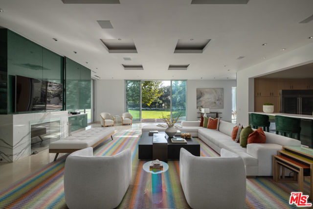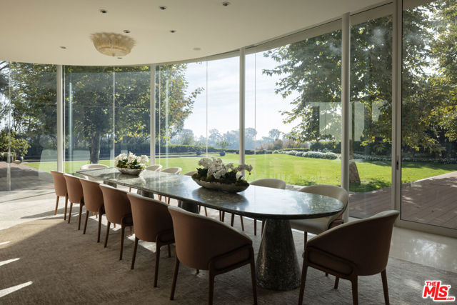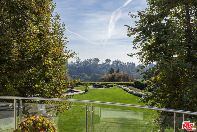 Museum Modern in Prime Huntington Palisades. Over 1.36 acres of verdant grounds, with views to the ocean, this rare offering is a world apart. A rare masterpiece, this private, double-gated estate was envisioned by Richard Keating, brought to life by Steven Giannetti and framed by lush landscaping by Calvin Abe. Monumental in scale yet warm in design, this 4 bedroom + staff suite residence offers nearly 14,645sqft of interior space with sweeping views from the canyons to the Pacific Ocean. Soaring 26-foot ceilings, palatial gallery-style corridors and walls of glass establish a museum-quality backdrop perfect for both art and architecture. Pristine white walls and expansive volumes are balanced by intimate, texture-rich spaces that invite daily living. A dramatic two-story foyer introduces luminous entertaining spaces, including a glass-wrapped formal living room with a unique water feature visible beneath a glass floor bridge at the entrance, a generous formal dining room curved in glass and a stylish lounge with custom bar and fireplace. The gourmet kitchen boasts upgraded appliances, bar seating and a striking marble island, blending culinary artistry with effortless entertaining. The "Blue Room" offers a stylish retreat with fireplace and bespoke bar, seamlessly suited for a media room, evening cocktails or quiet relaxation. Upstairs, the sleeping quarters unfold with elegance. The primary suite is a sanctuary with a sitting room, floor-to-ceiling windows, dual spa-style baths, oversized dressing rooms and an ocean-view terrace. Three additional guest suites, including a junior primary and one currently used as a gym, are complemented by a refined office with custom built-ins and terrace access. The grounds feature alfresco terraces with fireplaces and heat lamps, garden pathways, fruit trees and a fire-pit ocean lookout, while a lap pool with spa, towering sycamores and water features create a serene, elegant setting. Additional luxurious amenities include main-floor staff quarters, a private Venetian-inspired 10,000-bottle wine cellar with tasting room, a large motor court and a three-car garage. 652 Chautauqua stands among Pacific Palisades' most significant contemporary estates, designed for collectors, entertainers and aesthetes alike.