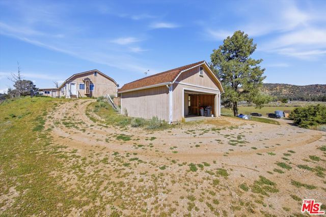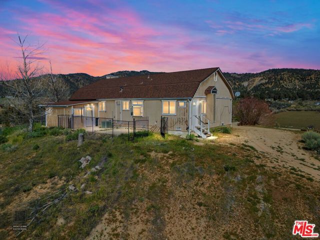 A rare opportunity in Lockwood Valley offering acreage, sweeping vistas, and a wonderful 3 bedroom home that is move-in ready with fabulous potential for further personalization or updates. Sited on 3.9 acres (2 APNs), and perched atop a hill in the Adams Trail Ranchos, you are beautifully enveloped by the views that are the hallmark of this amazing region - soaring mountain peaks, ancient sandstone formations, bucolic horse farms, and the immense wilderness of Los Padres National Forest. Step inside the enclosed front porch and enter the open plan great room to find a wood-burning fireplace, granite countertops, and ample room for lounging, dining, and entertaining. The large primary suite offers a walk-in closet and en suite bath complete with a spa tub for relaxation while soaking in the views. The home also offers two guest bedrooms, a guest bathroom with laundry, and a bonus workshop off the kitchen that presents for potential conversion to a finished office, gym, or additional sleeping quarters. Central AC and heat provide year-round comfort; a 486 SF detached garage offers extensive storage plus a workshop area; and the quality roof, fire sprinklers, and brand new Generac generator provide piece of mind. A covered carport breezeway offers easy parking aside from the garage, and the entire property is fenced with a separately fenced, flat 2.6 acre pasture for grazing and play. Equestrian and OHV enthusiasts will relish easy access to the extensive trail system for endless adventures in the National Forest, while the clearest night skies in SoCal provide unbelievable stargazing as a backdrop for your evenings. Priced to sell and ready to become your new mountain sanctuary, equestrian ranch, ATV basecamp, or full time alpine residence - all just 10 minutes to the restaurants, stores, and services in Frazier Park, 40 minutes to the new Hard Rock Tejon, and only 1.5 hours to the beating heart of Los Angeles.