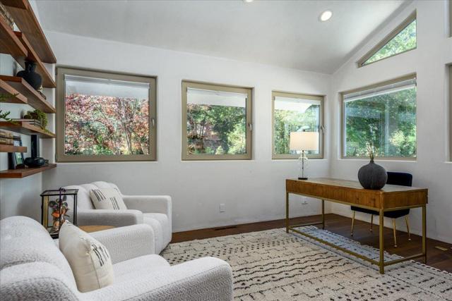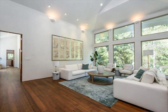 Stunning, completely remodeled Saratoga home boasts 3,900+ square feet of luxurious, open concept living spaces with premium custom finishes throughout. Four spacious bedrooms, including two primary suites, three spa-like bathrooms, a powder room, plus a bright and sunny office/den. Cathedral ceilings, elegant wood flooring throughout, plus picture perfect views from floor to ceiling windows add to the home's elegance. Chef's delight kitchen, equipped with high-end appliances, abundant concrete countertops, and pantry - perfect for culinary adventures. Nestled on a large, private parcel surrounded by mature trees, the property offers a serene escape, boasting multiple, private decks for entertaining or quiet enjoyment. Close to Sanborn County Park, minutes to Saratoga Village, and within the prestigious Saratoga Union Elementary School District, this one of a kind home is ideally located in one of the Peninsula's most sought-after communities. A must see!