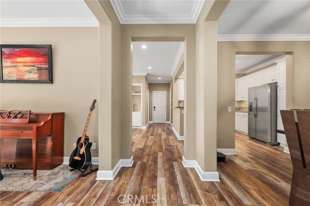 Welcome to this beautifully upgraded home in the highly desirable Arborage neighborhood of Ladera Ranch. Showcasing new flooring, laminate wood floors, and elegant crown molding, this residence offers a warm and inviting atmosphere throughout. The kitchen is thoughtfully designed with granite countertops, white cabinetry, and stainless steel appliances—perfect for everyday living and entertaining. Upstairs, the spacious primary suite features an ensuite bathroom with dual vanities, a soaking tub, and a walk-in shower. Three additional generously sized bedrooms and a full hall bathroom with dual sinks provide ample space for family and guests. This home is enhanced with valuable upgrades including paid solar, a water softener, reverse osmosis drinking water system, new turf front lawn, a new tankless water heater, and a brand new furnace with warranty. A two-car attached garage adds convenience and functionality. Enjoy outdoor living on the expansive wrap-around patio—ideal for relaxing or entertaining. Residents of Ladera Ranch enjoy award-winning schools and an abundance of resort-style amenities, including Cox high-speed internet, multiple pools and spas, parks, clubhouses, a water park, tennis and volleyball courts, summer concerts in the park, and miles of scenic walking and biking trails.