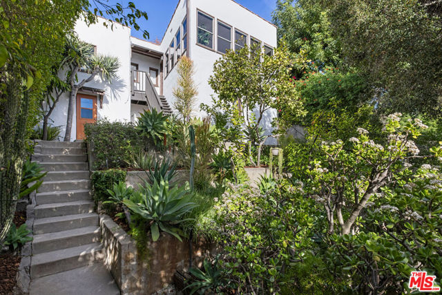 Tucked away from the street in prime Eagle Rock, this handsome Spanish is a study in period charm. The interior is stunning: golden light reflected in wood floors, a soaring beamed ceiling, and a stately fireplace anchoring the spacious living and dining areas. The adjacent library features elegant built-ins and one more fireplace. The kitchen and pantry maintain the period feel with white cabinetry, and there is a cozy breakfast nook. Three bedrooms include a primary wrapped with windows; the bathroom channels a vintage spirit, and the bonus room with a separate entrance is perfect for an office or guests.The outdoor spaces are magical: a terraced backyard with patios to lounge and enjoy sunset views, plus a front patio set beneath lush foliage. Amenities include central AC/Heat, laundry, and parking. Well-situated within the coveted Dahlia Heights Elementary boundary, you're moments from Capri Club, Little Beast, Cindy's, and the rest of NELA favorites.