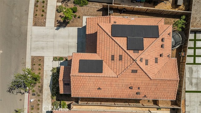 BACK AND BETTER! This beautiful McCaffrey home in Tesoro Viejo is move-in ready. OWNED solar system to ease your summer electricity bills. As you enter this home, you will be greeted with beautiful 12x24 tile flooring. Stunning quartz countertops, light gray cabinets, and stainless steel appliances in the kitchen. Beautiful shutters window covering throughout the house except the Primary Bedroom and Great Room have beautiful curtains. Modern light fixtures and ceiling fan prewires. One isolated bedroom and full bathroom are downstairs. The primary suite, two secondary bedrooms and a hall bathroom are upstairs. It's absolutely the best town in the country life style. There are walking trails, local fire station, healthcare clinic, eatery, amphitheater, elementary school, parks and many more amenities. To learn more about Tesoro Viejo life style, learn here https://tesoroviejo.com/blog/tesoro-viejo-expands-its-outdoor-amenities/ See it today before it's SOLD!