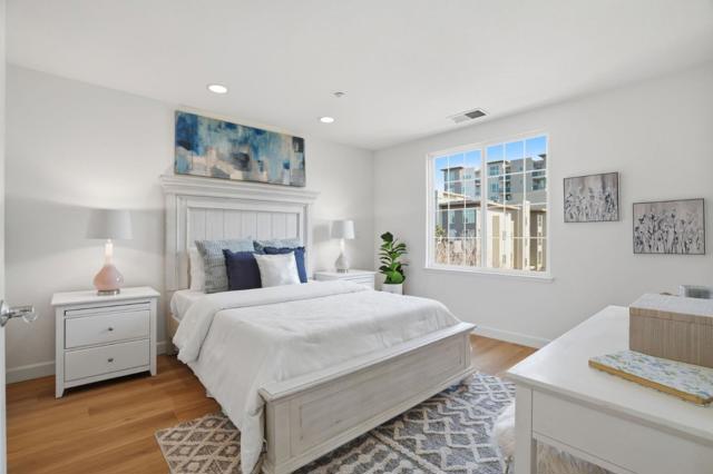 ELEGANT HOME OFFERS BREEZY FUNCTIONALITY | Tucked into one of the most desirable pockets of Rivermark, this updated home follows the popular Landings Plan I and enjoys the privacy of no neighbors directly in front. Airy interiors offer contemporary form and function, in addition to details like soaring ceilings, fresh paint, and stylish new luxury floors. A gas fireplace wired for wall media anchors the living room, which unfolds between the sunny patio and island kitchen for easy entertaining. The kitchen boasts updated cabinetry and a suite of stainless appliances, including a brand- new gas oven range with griddle. Both primary suites are fitted with walk-in closets, and one provides a luxury bath with soaking tub. Other highlights include an office nook, upper laundry, and attached two- car garage with crawlspace storage. Youll be just steps away from Live Oak Park, the library, community pool, Don Callejon School, and shopping, dining, and tea & coffee at Rivermark Village. Convenient to freeways, Google and Apples SJ campuses, NVIDIA, and much more!