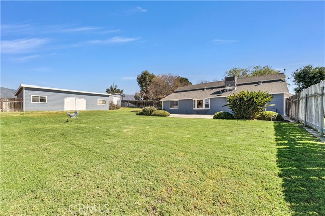 Beautifully refreshed property offering ample space and versatile use. Recently painted inside and out with custom colors, this home sits on a total of 1.54 acres. The 1.54 acres is made up of a 1.27 acre main parcel with an additional .27acre lot providing extra flexibility, privacy, or future potential. The property features an impressively large garage with approx 3,500 square feet of space, perfect for car enthusiasts, hobbyists, or anyone needing substantial workspace. Complete with RV parking and its own toilet, this garage is a rare and valuable addition. This home offers 3 bedrooms and 1 bathroom, thoughtfully updated with new carpet and a beautifully tiled shower enclosure. Inside, you’ll find a warm and inviting living room with wood ceilings and a sliding glass door that opens to the backyard, creating a seamless indoor,outdoor flow. A separate family room features French doors leading to a covered patio, ideal for relaxing or entertaining. A standout feature of the home is the upstairs bedroom area, providing additional flexible living space making it perfect for a home office, playroom, or guest area. Enjoy a cozy window seat, an ideal spot to relax and take in the beautiful views. The home also includes a dedicated indoor laundry room, offering added convenience and organization. The fenced backyard features a lush, plush lawn, offering plenty of space to enjoy the outdoors. Take in the scenic views both from the kitchen window and while standing on the property, adding to the peaceful and inviting atmosphere. In addition, a separate outbuilding contains approx 300 square feet provides endless possibilities whether you envision a home office, studio, workshop, or guest space. The expansive land offers room to grow, create, or simply enjoy. This unique property combines comfort, functionality, and scenic beauty. This is an opportunity you won’t want to miss.