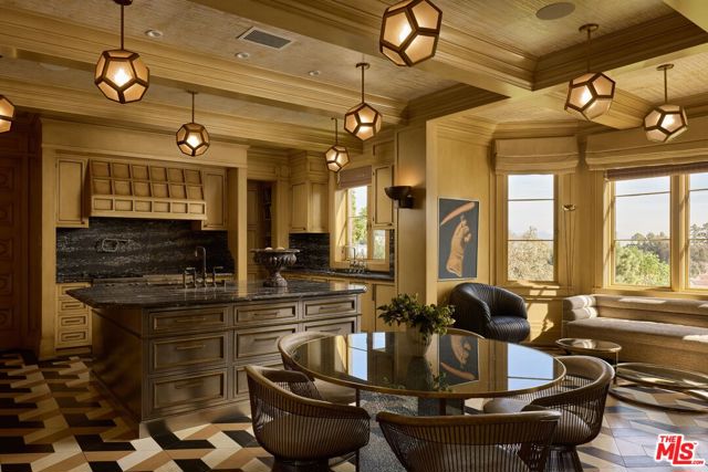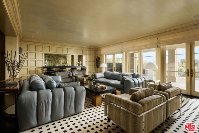 Overlooking the 10th fairway of the exclusive Bel-Air Country Club, 10790 Bellagio Road is a masterwork of Georgian architecture, reimagined with a refined contemporary sensibility. The estate commands sweeping vistas from the city skyline to the Pacific, with nearly every room opening to view terraces and balconies. Spanning roughly 14,200 square feet, the interiors are a study in precision and restraint, where proportion, materiality, and palette come together seamlessly. Under the direction of internationally acclaimed designer Kelly Wearstler, every detail has been carefully considered, blending timeless architectural elements with a modern, elevated aesthetic. The home offers seven bedrooms, anchored by a striking primary suite with dual dressing rooms and onyx-clad baths. Formal and informal living spaces flow effortlessly, including a grand family and media room with an adjoining library designed for both scale and intimacy. Set across approximately 1.24 acres of gently rolling, manicured grounds, the property unfolds with quiet grandeur. Expansive lawns, sculpted topiary gardens, and classical fountains surround a resort-caliber pool, pavilion, and separate studio. A stately slate roof crowns the residence, signaling a level of craftsmanship and permanence rarely seen. 10790 Bellagio Road is a rare convergence of pedigree, design, and setting, an estate that feels both enduring and entirely of the moment.