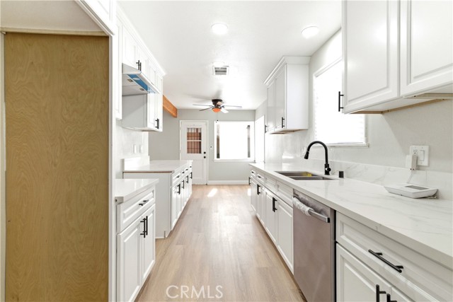 FOR SALE ONLY. This charming, and spacious home is in the BEAUTIFUL city of SAN BERNARDINO. In a beautiful tree lined street is this single-story home that has 3 bedrooms and 2 bathrooms. Completely remodeled and turnkey, with a NEW Iron gate, NEW paint inside and outside, NEW custom laminate floors, NEW quartz countertops, NEW baseboards, NEW kitchen cabinets, NEW light fixtures, NEW hardware, NEW dishwasher, NEW modern faucets, NEW custom kitchen backsplash, NEW recessed lighting, NEW ceiling fans, NEW windows and so much more. The bathrooms have also been remodeled. A large open floor plan that consists of a living room, dining area, and kitchen that utilizes every square inch of this place making it feel much bigger than it is. THREE ample sized bedrooms AND TWO full size bathrooms. Cooling and heating that will keep you comfortable all year long. A HUGE backyard with a covered patio, which is a great place to entertain friends and family during the seasons. It comes with a detached 2 car garage perfect for vehicle storage, there is also possible RV parking. This is a wonderful home in a very established neighborhood that is just getting better and better. Conveniently located ONLY minutes away from the 10 AND 210 freeway perfect for commuters. SCHOOLS and SHOPPING is within walking distance. This is a rare and wonderful opportunity to own a remodeled home in the beautiful city of SAN BERNARDINO! Contact us for a showing TODAY!