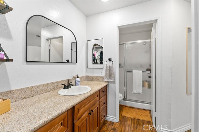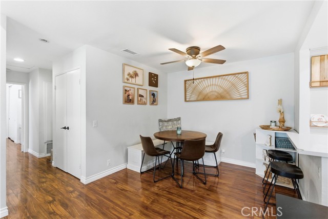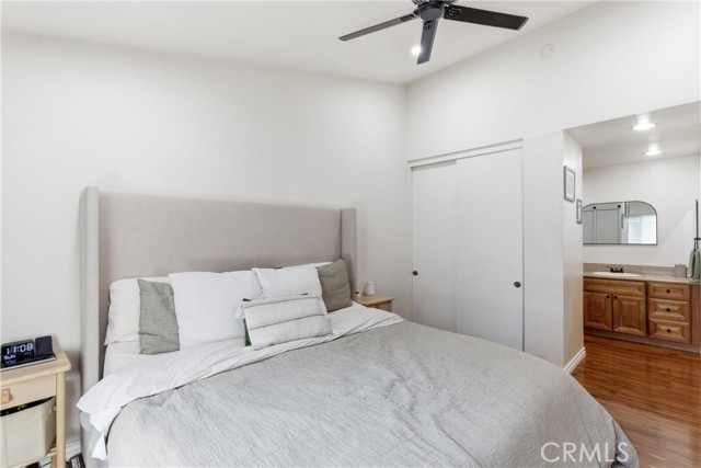 Space, style, and convenience all in one place! This bright and airy end-unit offers open living spaces, 2 bedrooms and 2 full baths, plus easy access to everything. Located in The Villages of Yorba Linda close to the 91 and 241 freeways and great neighborhood amenities, this home puts you right where you want to be. Enter the upper level and you’ll immediately notice the soaring vaulted ceilings and natural light streaming through the sliding glass door. Rich laminate wood flooring flows throughout the living spaces, connecting the spacious living room, complete with a cozy fireplace, to the dining area and beautifully updated kitchen. The kitchen features quartz countertops, newer stainless steel appliances, a large farmhouse sink, and recessed lighting. Just off the living room, a private balcony offers a relaxing outdoor retreat, with an in-closet laundry room nearby that has been upgraded and includes a newer water heater. Both generously sized bedrooms feature ceiling fans and sliding door closets. The primary bedroom boasts two closets and an ensuite bathroom with a granite-topped vanity and walk-in shower. The secondary bedroom has easy access to an updated full bathroom down the hall. A 2-car detached garage provides plenty of extra storage space. Community amenities at The Villages include a clubhouse, pool, spa, playground, volleyball court, BBQ area, and greenbelt walking paths, with water, trash, and electricity to the detached garage all included. You’re also close to Savi Ranch Shopping Center and highly regarded Yorba Linda schools including Yorba Linda High, Travis Ranch Middle School, and Bryant Ranch Elementary. Welcome home!