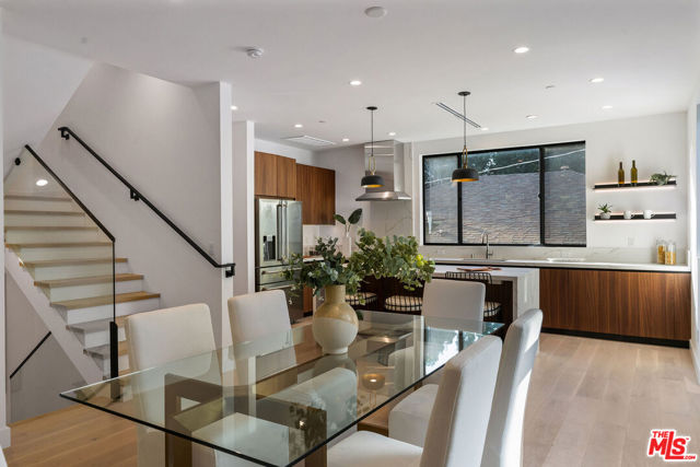 Just moments from Ivanhoe Elementary, this modern Silver Lake home blends light, views, and thoughtful design into a setting that feels both calm and elevated. The main living space opens effortlessly, with a generous great room adorned with a bamboo backdrop, flowing seamlessly into a warm, understated kitchen with walnut cabinetry, a large island, and Bertazzoni appliances perfect for quiet mornings or entertaining in the evening. Each of the three bedrooms is paired with a private ensuite, creating a collection of serene retreats throughout the home. The primary suite impresses with a generous walk-in closet and a spa-inspired bath, featuring a freestanding soaking tub, dual vanities, and elegantly understated finishes. Secondary bedrooms offer equal attention to detail, with spacious layouts and thoughtfully designed baths, ensuring comfort and privacy for family or guests alike. Upstairs, the rooftop deck becomes a natural extension of the home, offering wide-open views that stretch from the Silver Lake Reservoir to Downtown and the Griffith Observatory, an ideal backdrop for sunset evenings. Set within one of Silver Lake's most vibrant pockets, with easy access to local shops, restaurants, scenic trails, and the surrounding hillsides.