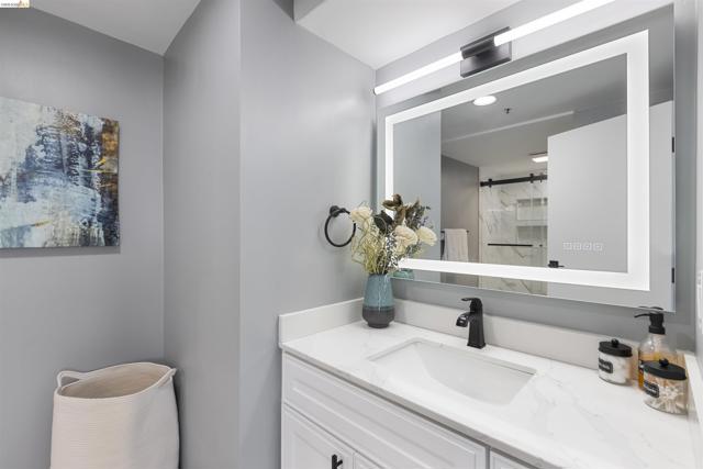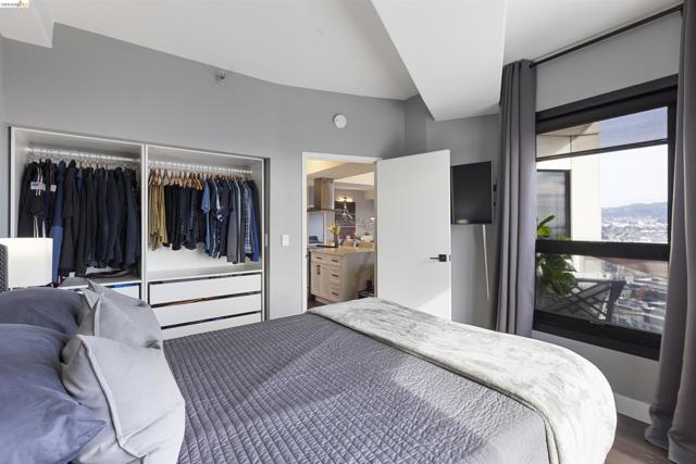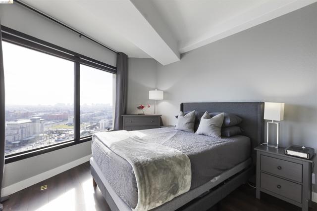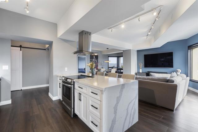 Welcome home to this one of a kind remodeled 2 bedroom unit in the exclusive Pacific Park Plaza building! This property has been meticulously remodeled from floor to ceiling with attention to detail. From the new LVP flooring throughout the home to the updated track lighting with dimmers. The kitchen boosts new white quartz countertops, white shaker cabinets, soft close drawers, glass backsplash with under lighting, and Stainless steal Frigidaire appliances. The half bathroom was updated to a full bathroom and both bathrooms have modern tile floors and walk in shower, LED mirrors, and Bidet. Both bedrooms have built in custom closets and spectacular views. The spacious open floor plan invites in natural light and the stunning views from the oversized windows and two balconies frame the hills in every room. Amenities conveniently located in the building including on site gym, tennis courts, pool/ hot tub, sauna, dedicated parking, EV car charging stations, laundry rooms on every floor and 24hr security desk. Steps to Christie park, Emeryville Public Market and Trader Joes. Plus, easy freeway access and multiple transit options including Amtrak, Emery-Go-Round Shuttle and Express Transbay bus lines right outside the front door!