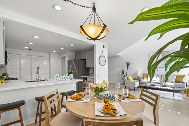 Move in and enjoy this beautiful 3-bed, 2.5-bath home in the desirable Capistrano Community, offering a great commute location and access to highly rated Cupertino schools. Nestled in a peaceful, park-like setting with monitored entry, this bright end-unit features a private backyard designed for CA living, complete with an outdoor kitchen ready for entertaining. Inside, you'll find soaring vaulted ceilings in the living room, a bright dining area overlooking the backyard, and fresh interior paint throughout. The first floor features new flooring, while the second floor offers brand-new carpet. The open kitchen includes quartz countertops, a breakfast bar, and stainless-steel appliances, ideal for everyday living and hosting guests. Inside laundry adds convenience. Upstairs, the primary suite features a vaulted ceiling and an updated ensuite bathroom. Two additional spacious bedrooms share a private balcony, offering a charming outdoor extension. The attached two-car garage provides excellent space for parking and extra storage. The community offers low HOA dues and is assigned to highly rated schools. Prime location near Apple Park, with easy access to major freeways and expressways and just minutes from the shops and restaurants of Santana Row.