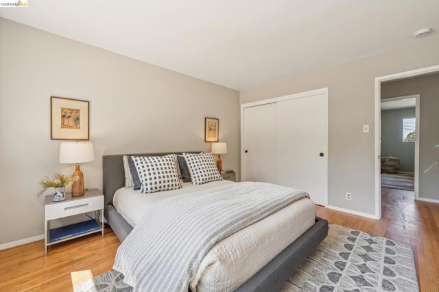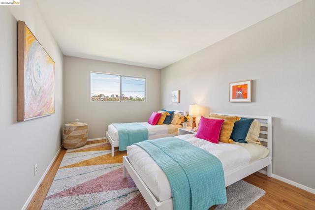 Ultra charming Mid-Century Rancher on expansive, over-sized lot (13,440 sq ft, nearly 1/3 acre!) Gleaming hardwood floors throughout, new paint inside and out, new lighting, new vinyl in the bathrooms, sun-drenched primary suite, great closet space, 2-car garage with interior access, 20' x20' party platform with party lights in backyard, fenced dog run, all on a quiet cul-de-sac with only 3 other homes! The Fairview neighborhood is incredibly well located just minutes from the 580 freeway, Downtown Hayward, and Castro Valley Marketplace, the hub of the area's burgeoning culinary scene. Just blocks from Don Castro Regional Recreation Area with its hiking trails, picnic spots, & summertime swim lagoon! Come discover this hidden gem!