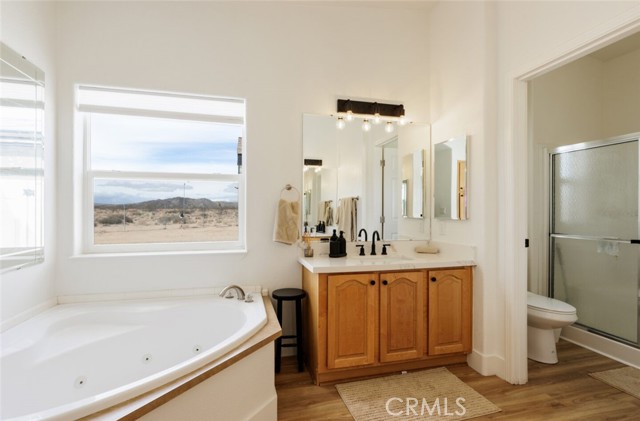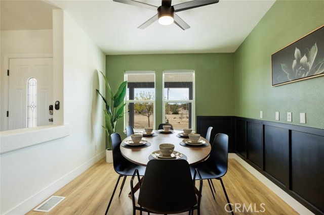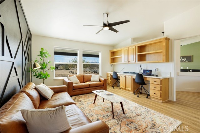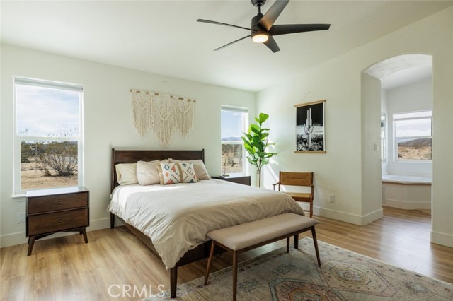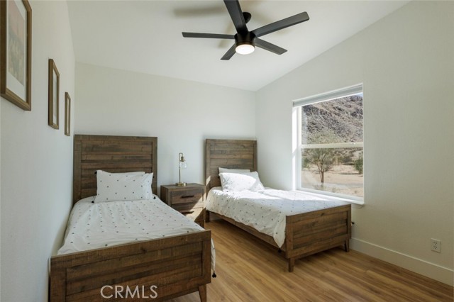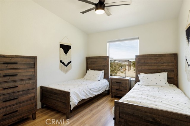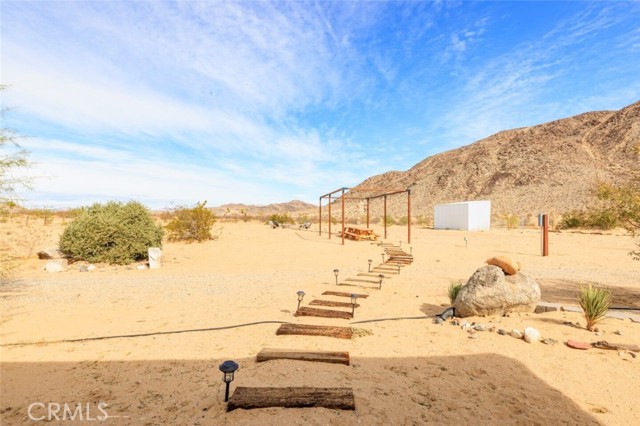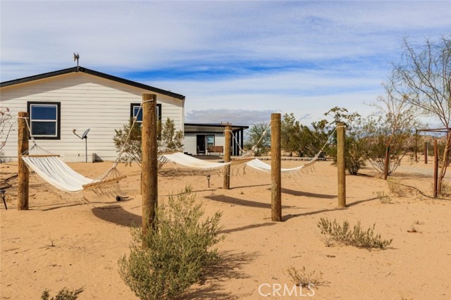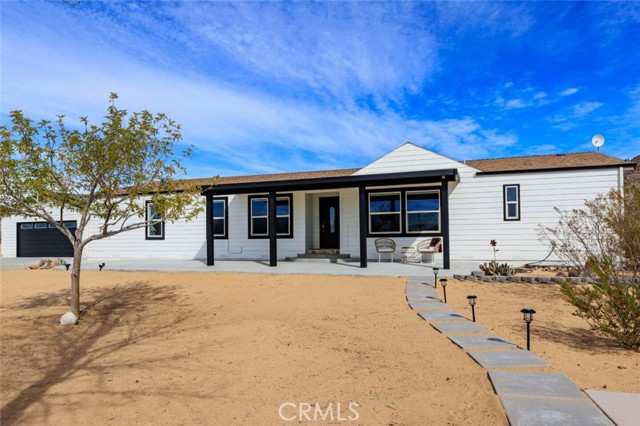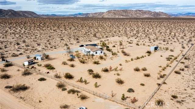 Your Dream Home at the Base of Goat Mountain! Discover this stunning 2,650 sq ft (estimated) residence set on 4.5 acres of fully fenced and gated land, located at the end of a peaceful, quiet road right at the base of Goat Mountain. Enjoy breathtaking panoramic views in every direction, including an incredible vista of the mountain itself—offering unmatched tranquility and privacy. This spacious home features: 5 large bedrooms, including a private bedroom attached to the oversized garage with its own bathroom Two luxurious master suites, one with a walk-in closet and spa bathtub. Cozy living room with a fireplace, all appliances are included. Separate family room and a modern kitchen with a walk-in pantry. Upgraded finishes throughout, including quartz countertops, solar shade window covers, and a covered back patio perfect for outdoor entertaining Formal dining area and a split floorplan designed for privacy. Additional Outbuildings & Amenities: Paid Solar system with 2 inverters for optimum output. An oversized garage with an attached casita, a perfect flex space for guest quarters or an office Storage container, greenhouse, and TuffShed (Saloon) for all your storage needs. Chicken coop, perfect for sustainable living or small-scale farming Fully paid solar energy system with dual inverters, significantly reducing energy costs Perfect for Equestrians & Off-Road Enthusiasts: This property sits up against one of the largest open BLM areas totalling more than 25,000 acres. You can hike for miles in peace. Horse corral and shaded area, ideal for riding or small-scale farming Located close to the renowned Integratron and Johnson Valley OHV area for off-road adventures This incredible property blends luxury, practicality, and adventure into one perfect package.
