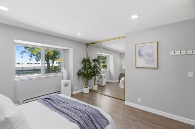 Affordable End Unit 2-Story Townhouse located in the heart of Silicon Valley. No neighbors upstairs and downstairs; two assigned carports and abundant parking space for visitors. Newly updated with fresh paint and modern recessed lighting. Downstairs, open floor plan between kitchen and the spacious living room, with a large sliding glass door leading to a private yard, offering an outdoor space for relaxing and gardening. Upstairs, enjoy two general-size bedrooms with large closets. This community offers pools, spa, saunas, club rooms, evening security & children's play area, etc. HOA covers water and garbage and enjoy the benefit of Santa Claras low-cost utilities. Walking distance to Central Park, Santa Clara Public Library; Close to Nvidia, Apple, and many high-tech companies. Great starter home for both first-time buyers and savvy investors. Don't miss out on this move-in-ready townhouse in a prime location!
