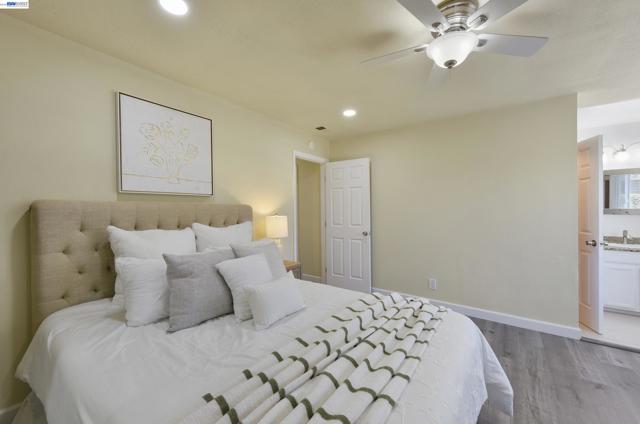 Welcome to 20 Yale Court — a beautifully updated single-story home on a quiet cul-de-sac in the heart of San Ramon. From the moment you arrive, the drought-tolerant landscaping, stone accent columns, and impressive double front doors set the tone for what's inside. The light-filled floor plan features vaulted ceilings, new luxury vinyl plank flooring throughout, and an effortless indoor-outdoor flow. The spacious living room centers around a classic brick fireplace, while the remodeled kitchen shines with white cabinetry, stainless appliances, mosaic tile backsplash, and a sunny dining area with direct patio access. The primary suite offers a ceiling fan, full mirrored wardrobe, and a spa-inspired en-suite with a frameless glass shower, floor-to-ceiling tile, and marble mosaic floor. Three additional bedrooms are bright and well-sized with mirror closets. The hall bath features a granite vanity and tiled tub/shower. Outside, a large pergola-covered patio with year-round usability overlooks a private, low-maintenance yard. 2-car attached garage with built-in storage completes this turnkey home. Served by the award-winning San Ramon Valley Unified School District — minutes from City Center, parks, and major commute corridors.