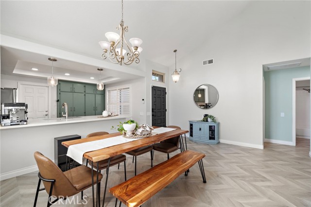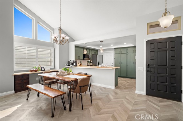 Experience elevated living in this beautifully reimagined Yorba Linda home, where thoughtful design meets effortless comfort. From the moment you enter, soaring vaulted ceilings and an open-concept layout create a sense of space and light that carries throughout the home. The main living areas are anchored by luxury flooring in a timeless herringbone pattern, adding a refined touch while guiding you from the entry into the heart of the home. The living room offers a warm and inviting setting, centered around an updated brick fireplace and complemented by a soft, neutral palette. Natural light pours in, enhancing both the scale and livability of the space, while features like a Panasonic Balanced Home ventilation system and whole-home water filtration add an extra layer of everyday comfort. The layout flows seamlessly into the dining area and a well-appointed kitchen designed for both function and style—ideal for entertaining or simply enjoying daily life. The home features two well-proportioned bedrooms, including a spacious primary suite with vaulted ceilings and a peaceful view of the backyard, creating a true retreat. Both bathrooms have been thoughtfully upgraded with modern finishes, offering a clean, cohesive design that matches the quality seen throughout the home. Beyond the home itself, the lifestyle is just as compelling. Located in the heart of Yorba Linda, you’re moments from scenic equestrian trails, Black Gold Golf Club, and the shops and dining at Yorba Linda Town Center. All of this, within the highly regarded Placentia-Yorba Linda Unified School District. A turnkey opportunity that blends design, comfort, and location in one of Orange County’s most sought-after communities.