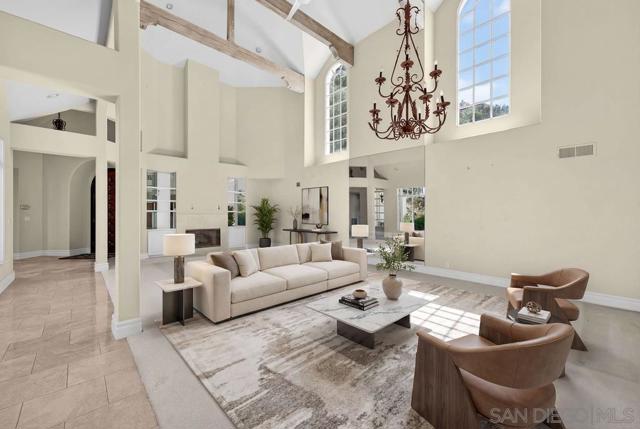 Situated behind the gates of Del Mar Country Club, this beautiful chateau presents a rare opportunity to reimagine and make your own. Privately positioned at the end of a cul-de-sac on an elevated homesite, the residence enjoys serene golf course views and a sense of quiet seclusion.Thoughtfully designed, the main level features a desirable ground-floor primary suite, a dedicated office with 2 en-suite bedrooms on the second floor. A detached studio apartment above the garage provides flexible space for guests or a private retreat. Complete with a timeless slate roof and set on a private lot, this home offers the perfect canvas to create a truly bespoke estate in one of Rancho Santa Fe's most coveted communities.