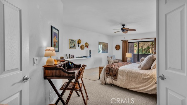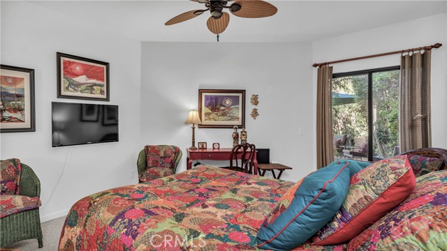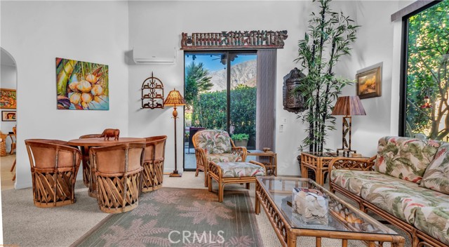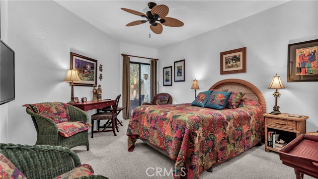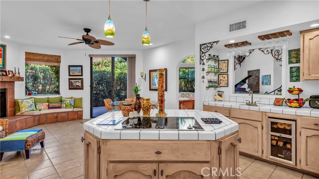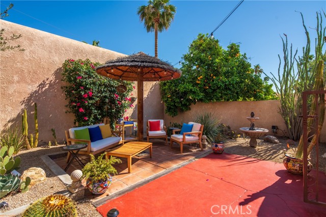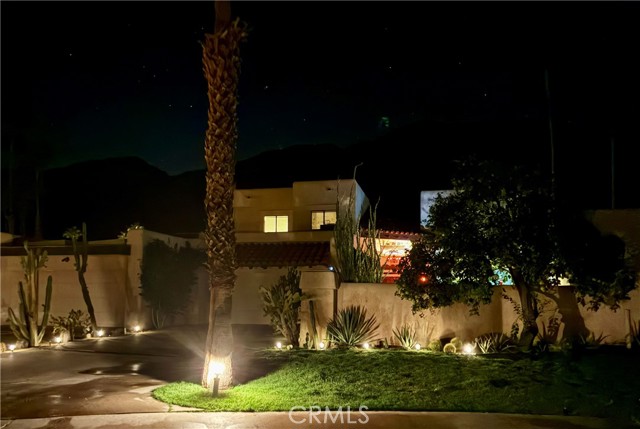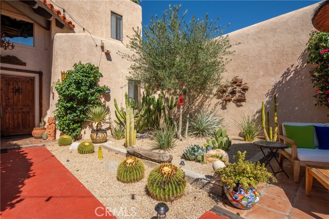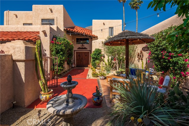Entering the beautifully landscaped and vibrant front courtyard, you’re immediately greeted by the stunning custom double-door entry handcrafted in Michoacán, Mexico. This gorgeous home is truly an entertainer’s dream. Guests will be wowed the moment they step inside, taking in the architectural details—vaulted tongue-and-groove ceilings in the living room and a sweeping staircase that sets an impressive tone. Offering nearly 3,000 square feet, this 3-bedroom, 3-bathroom residence includes a convenient downstairs bedroom and full bathroom, complete with sliding glass doors that open to the private back patio. Upstairs, the spacious primary suite features its own bathroom, while the additional bedroom and bathroom provide comfort and privacy. Both upstairs bedrooms offer viewing decks with close-up, unobstructed views of the iconic Indian Head Mountain. Owned solar and two split systems provide year-round comfort and energy savings—just two highlights from the seller’s extensive list of upgrades. Please see the list of improvements in the supplements. The chef’s kitchen features a large island perfect for gatherings, the connected family room offers a cozy fireplace with an updated hearth and mantle, ideal for relaxing evenings at home. Ideally located near shopping and just moments from the renowned De Anza Golf Course—where memberships are available—this home is a golfer’s dream. Association amenities just steps away include a sparkling pool, relaxing spa, and tennis court, offering resort-style living year-round