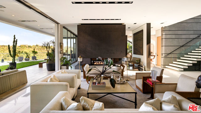 Set behind private gates in the prestigious hills of Bel Air, this striking architectural estate delivers an extraordinary level of privacy, security, and presence offering a true sanctuary above the city. A secluded circular driveway accommodates up to seven vehicles, complemented by a spacious three-car garage, setting the tone for a residence defined by both discretion and effortless luxury. A dramatic arrival opens to luminous interiors where soaring ceilings and expansive walls of glass create a seamless, open-concept design tailored for modern living and grand-scale entertaining. Natural light floods the home through skylights and floor-to-ceiling windows, framing sweeping panoramic views of the city skyline, surrounding hills, and the Pacific Ocean. The main living spaces unfold with ease, centered around a stunning double-sided fireplace and living space that is enhanced by retractable glass walls that dissolve the boundary between indoors and out. A sleek bar anchors the living area, elevating the space into an entertainer's showpiece. A refined palette of cool stone and metallic finishes is perfectly balanced by the warmth of French white oak floors. Statement walls clad in Absolute Black Granite add depth and sophistication throughout. The chef's kitchen is both a visual centerpiece and a functional masterpiece, featuring an oversized island, bespoke cabinetry, natural stone surfaces, and appliances all positioned to capture the home's breathtaking views and embodying the ultimate California indoor-outdoor lifestyle. The residence offers seven bedrooms and ten bathrooms, along with a private home theater, a 300-bottle wine cellar, and thoughtfully integrated bar spaces. Each room is curated to reflect a harmonious blend of comfort, scale, and architectural significance. A private elevator services all levels. Designed for unforgettable entertaining, the backyard rivals a luxury resort. An expansive outdoor living area with an kitchen flows effortlessly to a sophisticated bar setting near the spa perfect for hosting under the stars. The negative-edge infinity pool, sun deck, and spa overlook unobstructed vistas that stretch from the Los Angeles cityscape to the Pacific Ocean, creating a truly breathtaking backdrop. Just minutes from Beverly Hills, Westwood Village, and Brentwood, this exceptional offering represents a rare opportunity to own a statement residence that seamlessly blends bold design, ultimate privacy, and world-class views in one of Los Angeles' most coveted enclaves.