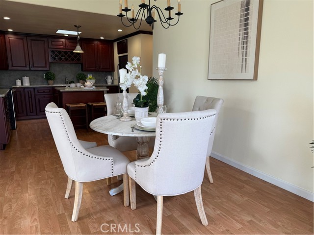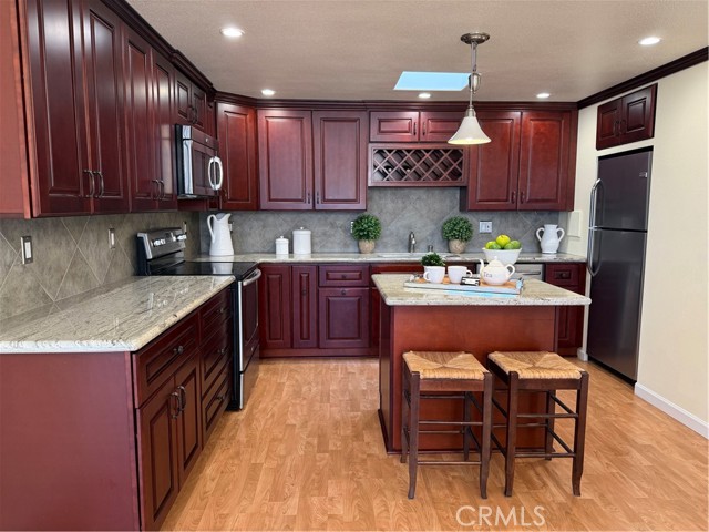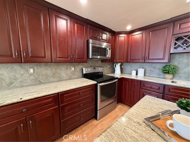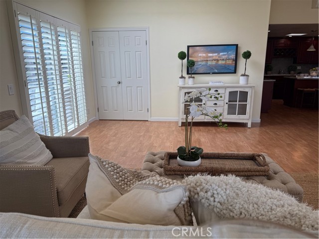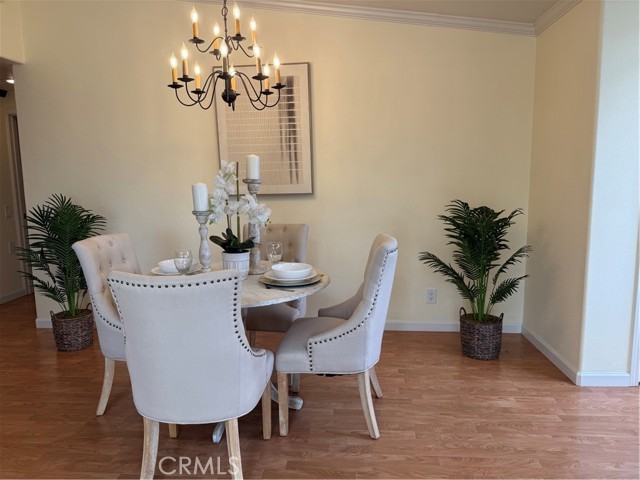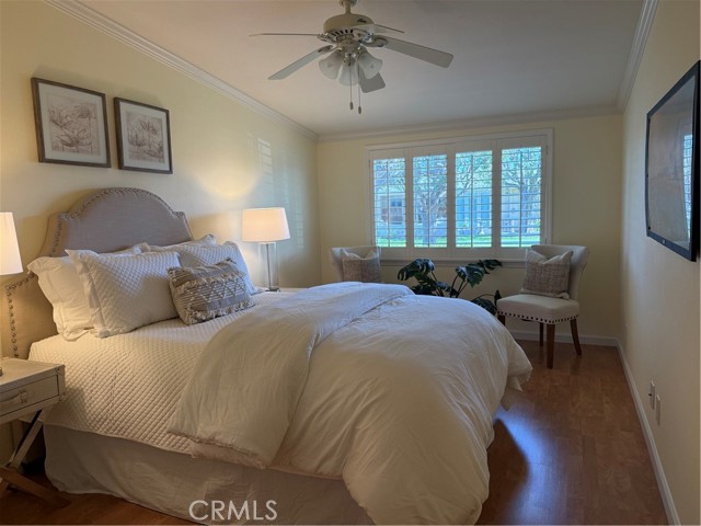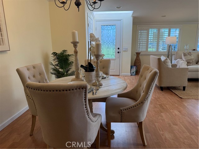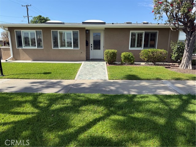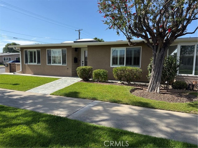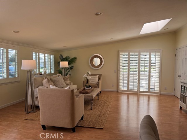 This Beautifully expanded 2 bedroom 2 bathroom corner home is delightfully upgraded. The striking front door enters into a spacious light and bright living room that features elegant crown molding, double pane windows with plantation shutters, heat pump, a skylight and a sliding glass door to a desirable private patio. Adjacent to the living room is a charming formal dining area. The gourmet Kitchen features rich wood cabinetry with granite counters, built-in and up-graded electric stainless steel appliances including a range, dish washer, and refrigerator. This magnificent kitchen also includes a built-in wine rack, island with bar height seating, and recessed lighting. The main bathroom has custom cabinets with granite counters, a walk in shower for your convenience, full sized front loading stacked washer/dryer, and skylight. This wonderful main bedroom is fully expanded and enjoys a walk-in closet, crown molding double pane windows with Plantation shutters, heat pump and ceiling fan for your comfort. The light and cheerful second bedroom features the very desirable second three-quarter bathroom and walk-in closet. Features throughout include double pane windows with plantation shutters, lovely laminate flooring and crown molding. This special home is located on a pretty green belt with lots of trees and greenery. The private patio is perfect for entertaining friends and family while relaxing and enjoying fabulous sunsets and wonderful ocean breezes. Drive-up parking is a convenient bonus and the nearby carport has ample storage. As a bonus this home is within a 5 minute walk to clubhouses 3 and 4 and the library. It is also within walking distance to downtown Leisure World, the Amphitheater, pool, and 9 hole 3 par golf course. Leisure World is located in the City of Seal Beach and offers over 160 clubs, organizations and activities including a nine-hole three-par golf course, swimming pool, jacuzzi, gym, bocci ball, shuffleboard court, billiards rooms, woodworking shop, arts, crafts, and sewing rooms, amphitheater, library, health care center, a variety of cards and exercise groups, and so much more. Enjoy the restaurants, shopping, sunsets, and gentle ocean breezes the coastal City of Seal Beach has to offer. Don't miss out! Stop by and take a look at this amazing home.