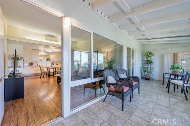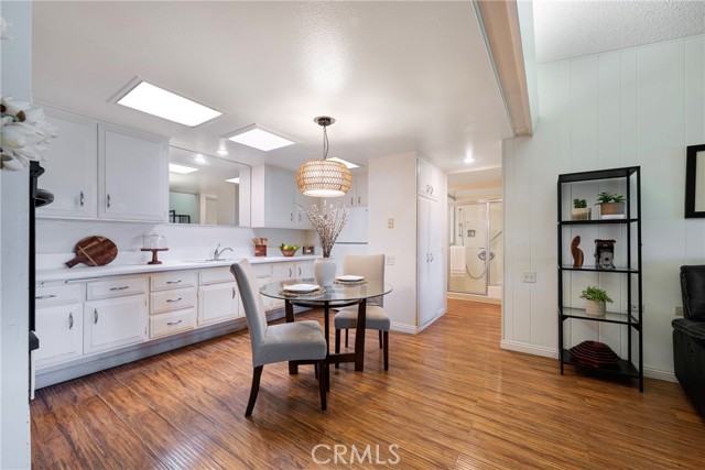 Welcome to this bright and spacious home in the desirable 55+ guard-gated community of Leisure World Seal Beach. The living room features dramatic vaulted ceilings, creating an open and airy feel rarely found in these units. Natural light fills the home through skylights in both the kitchen and bathroom, enhancing the warm and inviting atmosphere. The kitchen offers white laminate countertops and a flexible breakfast nook area, perfect for a dining table or a future kitchen island. A permitted enclosed patio provides valuable additional living space, ideal for a reading room, office, or hobby area. Residents enjoy access to an incredible array of amenities including a 9-hole golf course, swimming pool and spa, fitness center, clubhouses, library, art and woodworking studios, gardening plots, shuttle service, and more than 160 social clubs and activities. Ideally located just minutes from Seal Beach, shopping, dining, and medical facilities, this home offers comfortable living in one of Orange County’s most established active adult communities.