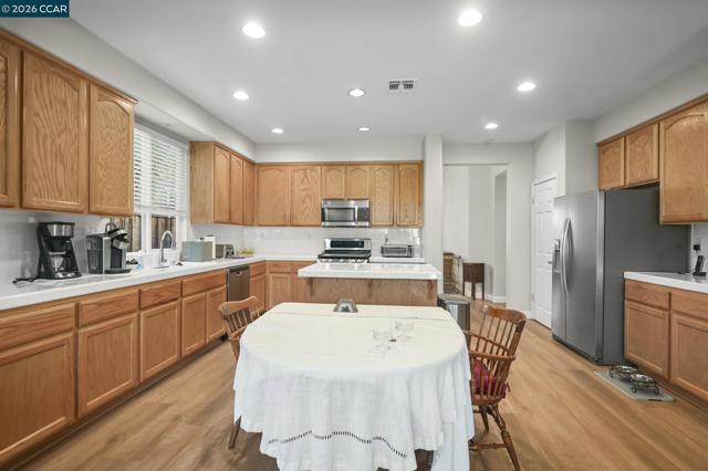 Come see this expansive 4 Bedroom, 2 Bath with 27 panels of Sun producing energy (owned and loan will be paid off at COE) in over 2050+ sq ft. This loving home has brand new interior paint (less than 60 days) and LVP plank (less than 30 days) flooring throughout, all dressed up and ready to go. The amazing landscaped and well manicured front and rear yards, with patio and lighting and some of the most amazing rose bushes that are in full bloom, all wrapped up in an expansive open feeling floor plan. Newer appliance set in the Kitchen, well maintained and plenty of storage, Kitchen opens to Sitting room and the front has and open formal dual room function too. Overall an incredibly functional layout and nothing to do but move in.