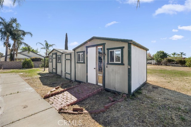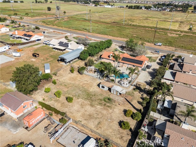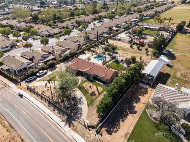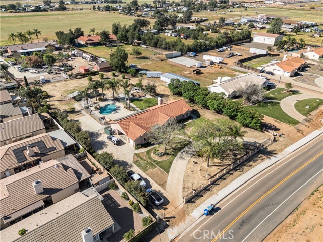 Opportunity awaits at this 4 bedroom traditional ranch in a desirable Menifee location. Situated on approximately 1 acre prestigious lot with a view of the hills. No HOA. This property has been owned by the same owner for many years. The exterior features private front gates with welcoming mature palm trees, multiple front, side & back patio areas and loads of yard area for gardening, RV access, storage area and open space and a fenced swimming pool and BBQ area with plenty of extra space to entertain and relax. The interior boasts an oversized formal living room and dining room area with a picture window. The family room includes a fireplace, and a large kitchen has plenty of pantry space and a breakfast bar. Four generously sized bedrooms and three bathrooms, an attached 3-car garage, and interior laundry room complete this spacious floor plan. The exterior has potential for extra storage space and this location has great access to freeways, shopping, restaurants and so much more. You’re sure to be pleased.