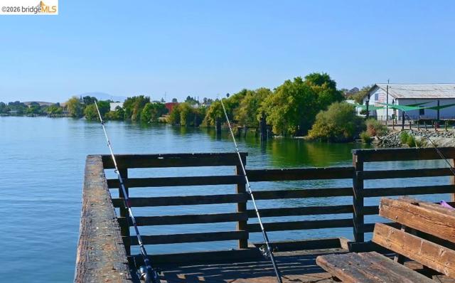 This charming ranch home has inviting brick entry, large porch, and low maintenance rock front yard. The home features a quaint living room that is large enough to double as a living room and dining room, an eat-in kitchen, a family room with fireplace, three spacious bedrooms, and dual pane windows. The living room, kitchen eating area, hallway, primary bedroom, one guest bedroom all have the original hardwood flooring. The kitchen features butcher block counters, an electric free-standing stove, and ample counter space. The refrigerator, washer, and dryer are included. The updated bathrooms have tile and vinyl flooring, new toilet, and updated sink/vanity. Guest shower it tile. Spacious primary shower is solid surface with glass enclosure. The large rear yard features a spacious area for a garden or lawn and a small covered side yard access for a small boat, jet ski, or ATVs. The roof and the HVAC system are less than 4 years old. Rio Vista has amazing fishing spots, river access, parks, community events, great restaurants, wineries, downtown stores and parks, and ease of access to highway 12 and miles of Delta Waterways. Neighborhood is walking distance to the grocery store and Drouin Drive park.