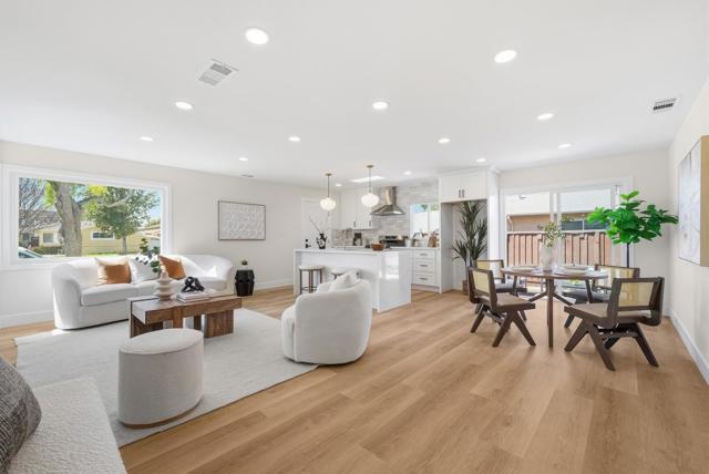Remodeled with permits, this charming ranch-style single-family home blends modern upgrades with comfortable, functional living. The beautifully updated kitchen features new cabinetry, new appliances, and a skylight that fills the space with natural light. Both bathrooms have been tastefully renovated with contemporary finishes. Additional upgrades include Level 5 smooth wall finishes, recessed lighting, fresh interior and exterior paint, and a brand-new central HVAC system for year-round comfort. While the recorded square footage is modest, the thoughtfully designed layout lives much largeroffering an open, airy feel with bright and inviting living spaces throughout. Step outside to a low-maintenance garden, perfect for relaxing or entertaining without the burden of extensive upkeep. Ideally located for Silicon Valley commuters, this home provides convenient access to major tech campuses, along with nearby shopping, dining, and everyday amenities.