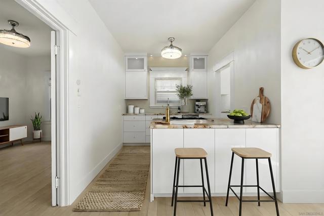This charming Craftsman bungalow is perfectly situated in the heart of Mission Hills and offers the ideal blend of character, comfort, and convenience. Thoughtfully designed to make the most of every square foot, the light-filled, open floor plan creates an inviting space that feels welcoming from the moment you step inside. Fresh interior paint, newer windows and doors, classic glass doorknobs, and a beautifully rebuilt gas fireplace honor the home’s timeless Craftsman details while seamlessly incorporating modern updates. A mini-split heating and cooling system provides year-round comfort, and the Kenmore Elite combo washer/dryer adds everyday ease and functionality. The recently remodeled kitchen is both stylish and functional, featuring quartz countertops, a glass tile backsplash, under-cabinet lighting, abundant storage, a five-burner gas stove, and a dishwasher. Both bedrooms offer generous walk-in closets, and the spacious Jack-and-Jill bathroom includes a tub and shower combo. Outside, enjoy an inviting front porch, a private back patio perfect for relaxing or entertaining, low-maintenance landscaping, off-street parking, and a handy outbuilding/shed. The result is a home that lives larger than its footprint — warm, efficient, and move-in ready — perfectly suited for enjoying the relaxed Mission Hills lifestyle. All of this is just moments from shopping, dining, cafes, Pioneer Park, and everything people love about Mission Hills. Enjoy maximum enjoyment per square foot in a location that’s hard to beat!