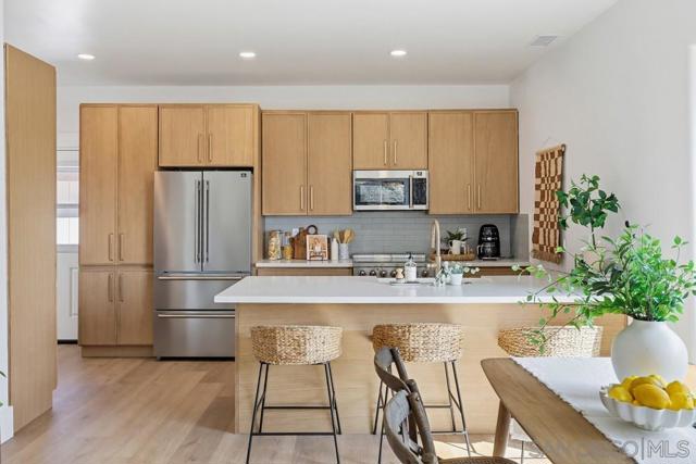 Located in the heart of University Heights, adjacent to North Park and Hillcrest, this beautifully renovated home offers the best of urban living with a Walk Score of 95. Enjoy close proximity to Balboa Park, top dining, nightlife, live music, and easy access to major freeways—all from one of San Diego’s most central and vibrant neighborhoods. Perched above Georgia Street with city light views, the home has undergone a comprehensive renovation with major system upgrades throughout, including new electrical with replaced sub-panels (main, garage, and hot tub), new copper plumbing supply lines, updated ABS waste lines, new roofing and sheathing, brand new HVAC and ducting, and a new water heater. Fully electric and energy-efficient, the home is also EV-ready with a Tesla charger installed. Inside, soaring 9-foot ceilings in the kitchen, living, and dining areas create a bright, open feel with abundant natural light. Designer finishes include all-new cabinetry, quartz countertops, stainless steel appliances, luxury vinyl flooring, and beautifully tiled shower surrounds. Outdoor spaces feature drought-tolerant landscaping with turf, pavers, a reconstructed deck, and drip irrigation ready for a privacy hedge. An oversized garage offers a unique opportunity for ADU conversion or potential for an additional unit above, providing excellent income or multigenerational living potential. A true turnkey, low maintenance property combining lifestyle, location, and future upside.