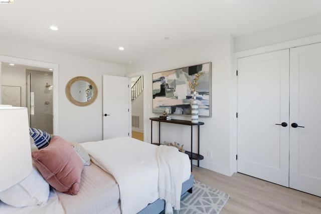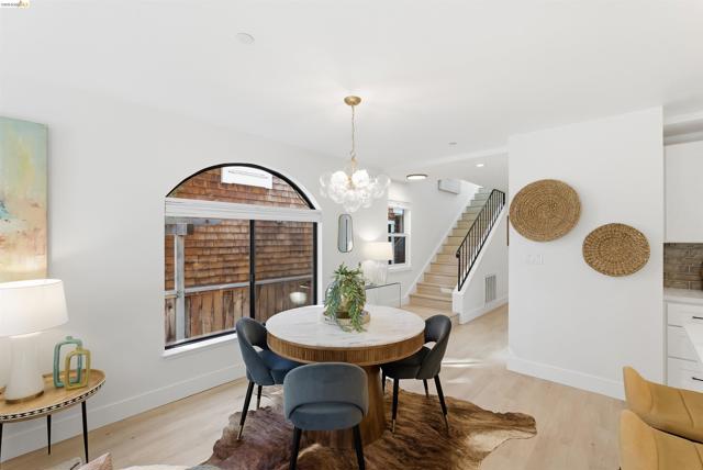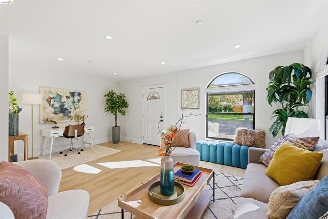 Welcome to this charming 3-bedroom, 2.5-bath home in sought-after Albany, extensively remodeled in 2024 with thoughtful updates throughout. Move right in and enjoy a fresh, cohesive design that blends comfort and modern style. Large windows fill the home with natural light, enhancing the open-concept living, dining, and kitchen areas—ideal for both everyday living and entertaining. The updated kitchen features stainless steel appliances, generous storage, and ample prep space. A hallway leads to a half bath, laundry area, and ample storage, before opening to the private backyard, where a spacious deck invites outdoor dining and relaxation. The main-level primary suite provides a peaceful retreat with an en-suite bath and direct deck access. The upper level features two additional bedrooms and an updated full bath. Major 2024 improvements include roof, tankless water heater, Andersen windows, flooring, sprinkler system, electrical, and plumbing, along with front yard landscaping and irrigation. Conveniently located near top-rated schools, Memorial Park, Albany Aquatic Center, Solano Avenue, El Cerrito Plaza, and transit (Walk Score 90), this home offers the best of comfort, convenience, and updated living.