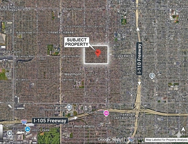 Owner-user or re-development opportunity at 1143 W. 101st Street in Los Angeles County. The property is zoned Los Angeles County C2/R3 and contains 6,893 square feet. With pull-through driveway access from both Century Blvd and 101st St., this property offers excellent flexibility for both owner-users and investors seeking long-term upside. The site features a small existing structure with a living area, kitchen, and bathroom, providing immediate functionality for a variety of commercial uses. Ideal for automotive-related businesses such as a mechanic shop, tire service, or other light industrial or service-oriented operations. For developers, the property presents a value-add opportunity. Currently, zoning allows for commercial uses or up to 8 apartment units, with potential for further density enhanced through Accessory Dwelling Units (ADUs), affordable housing incentives, and/or applicable county programs. Conveniently located with access to major transportation routes, the property benefits from strong connectivity, supporting both commercial operations and future residential demand. Whether you're an owner-user seeking a functional and flexible commercial site or an investor targeting redevelopment potential, 1143 W. 101st Street offers versatility, favorable zoning, and significant upside. Buyer to verify all zoning, permitted uses, and applicable county programs and incentive opportunities.