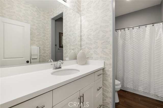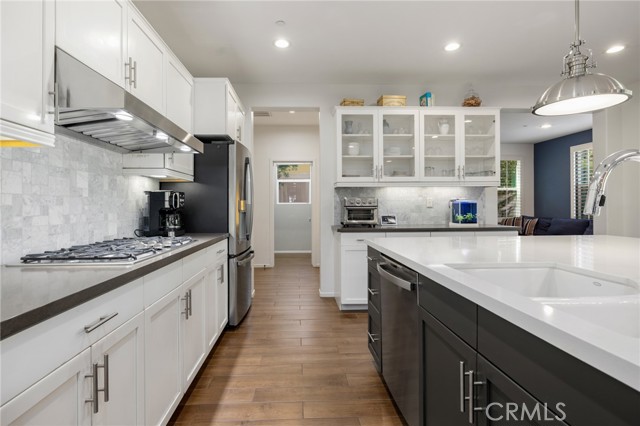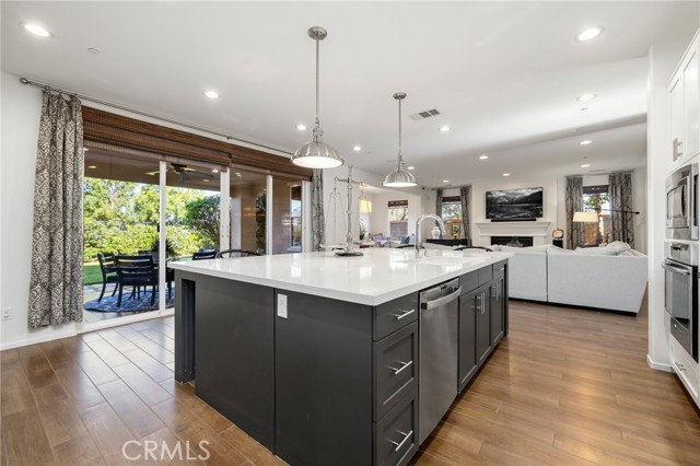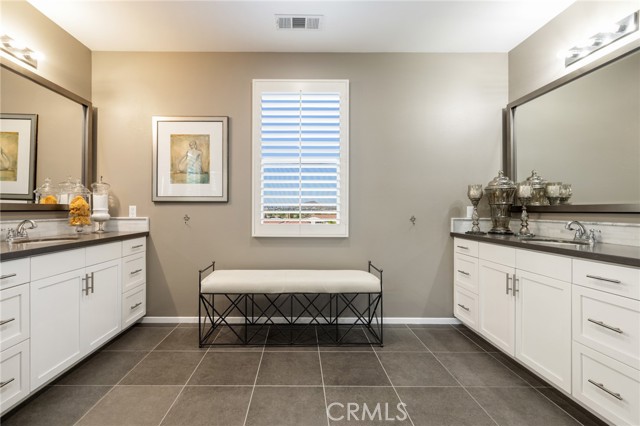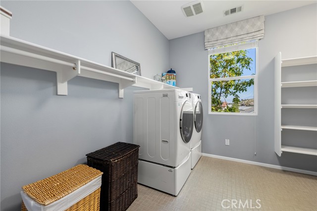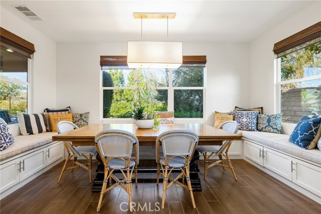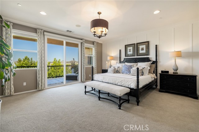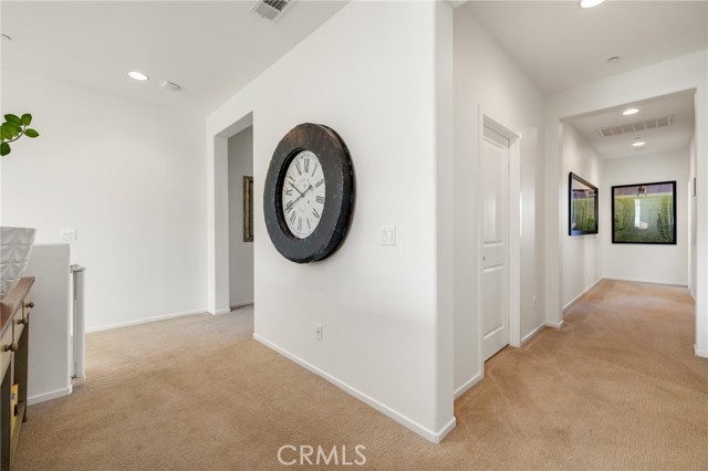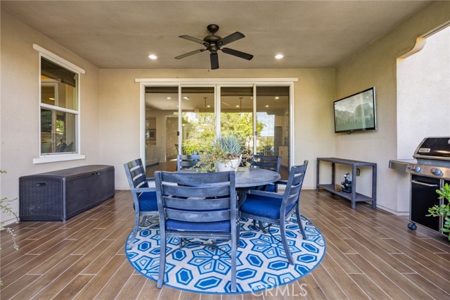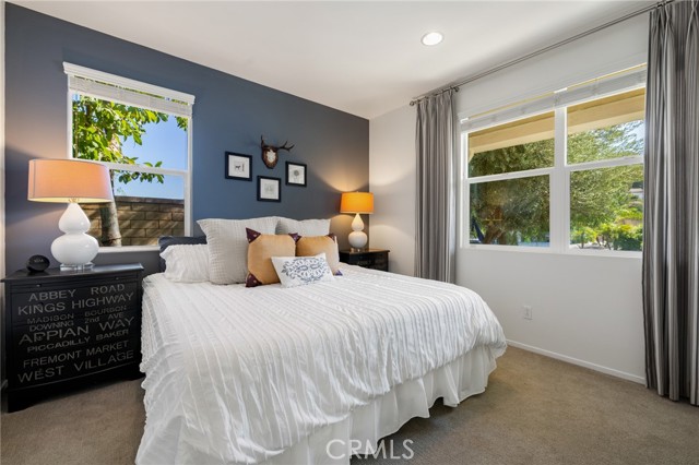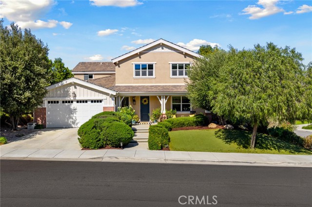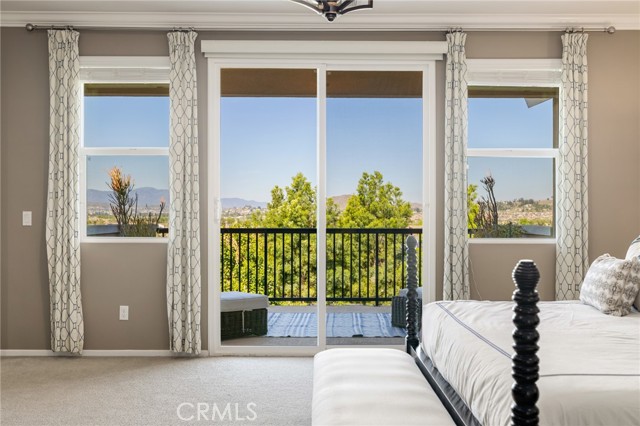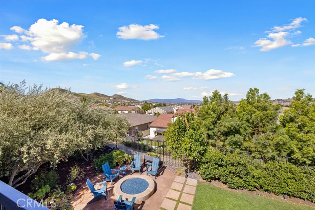 Step inside one of the most sought-after properties in all of Audie Murphy Ranch, in Menifee. This former model built by Brookfield is considered the Matriarch of the community offering 3800 sq ft, unobstructed views to the Ortega Mountains, 5 bedrooms, 3 baths, a rare 4 car garage, on a corner lot of one of the most desirable streets with solar. The mature landscaping and custom concrete steps lead the way up to a quaint porch looking out to Mountain Views. As you enter the home you are greeted by 30-foot ceilings, tile floors, custom paint, and hundreds of thousands of dollars in designer upgrades. The main floor boasts a large bedroom with upgraded carpet, and a walk-in closet. The main floor bath boasts designer wallpaper, and a tub shower combo. The open floor plan offers a flex space perfect for a piano just off the large dining room featuring a custom chandelier. The Grand Great Room offers a fireplace and surround sound, large windows allowing tons of natural light and bamboo shades. An oversized kitchen nook features built-in seating with storage and custom chandelier. The gourmet kitchen is appointed with two tone quartz counters, an extra-large island, stainless steel appliances, tile backsplash, pendant lighting, and glass front cabinets. The mudroom has a built-in desk and cabinets and access into the massive enclosed walk-in pantry. One more flex space on the main floor boasts designer carpet and plantation shutters. The second story offers 3 large secondary bedrooms, all with custom paint, offering either walk-in closets, surround sound or crown molding. They share a secondary bath with designer tile floors, and a tub shower combo. The large laundry room offers ample storage, sitting across from a walk-in linen closet. The breathtaking primary boasts surround sound, a wood accented wall, custom chandelier and the most exquisite unobstructed views off a large, attached balcony. The primary bath has Hollywood vanities, a soaking tub, shower, large walk-in closet featuring custom built-ins. Through a 12-foot double slider is the entertainer’s dream yard offering a CA room, tile deck, real grass, gas fire pit, and tons of mature landscaping offering privacy. The community offers pools, spas, sports courts, hiking and biking trails, a clubhouse, skatepark & the award-winning Taawila ES & the new Kathryn Newport MS. The home is located within feet of the Elementary school and parks, between the 15 and 215 freeways and super close to shopping.