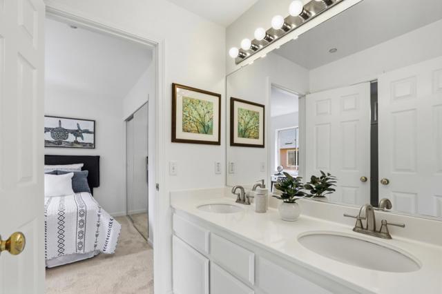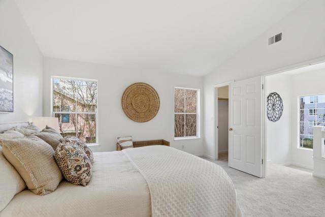 Welcome to 1007 Vardin Terrace, a beautiful east-facing end-unit townhome in one of Fremont's most sought-after communities. This 3-bed, 2.5-bath home offers 1,610 sq ft of bright, open living space with vaulted ceilings, laminate flooring, a cozy fireplace, and a sliding glass door to patio. Fresh interior paint throughout and new carpet add to the homes fresh and welcoming appeal. The primary suite features vaulted ceilings, a large walk-in closet, double vanity, a shower/tub combination, and a private toilet area. Bedrooms two and three share a convenient Jack and Jill bath with double vanity with separate shower/tub combination. The home includes an oversized, extended 2-car garage with a dedicated laundry area, and a rare, expansive crawl space which provides exceptional storage capacity, all without impacting interior living space. Set in a serene, well-maintained community surrounded by lush greenery and nearly 600 trees - including majestic redwoods - residents enjoy a sparkling pool & Jacuzzi, and tranquil surroundings, all for a low HOA of just $275/month. Commuters will love the quick access to BART, while families benefit from top-rated schools, Lake Elizabeth & Central Park, medical facilities, grocery stores, and diverse dining, all just minutes away.