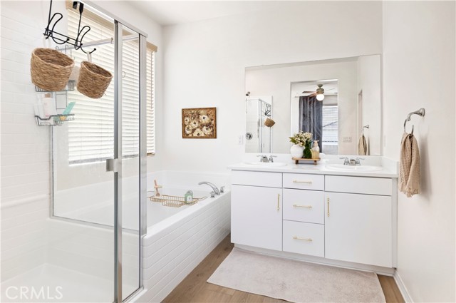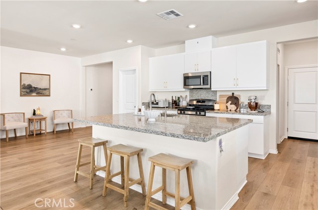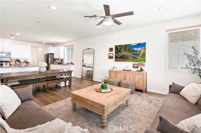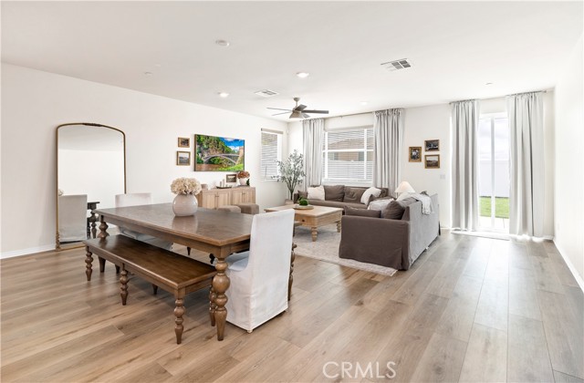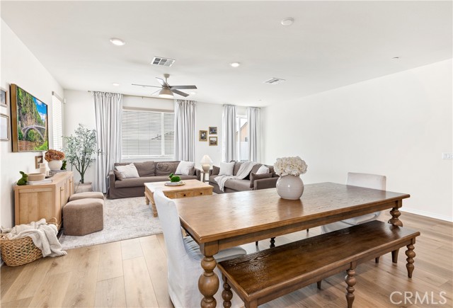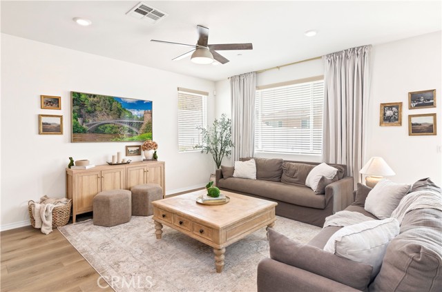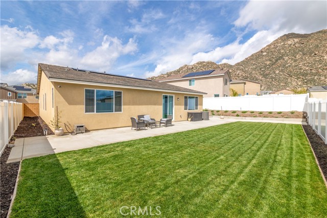 Welcome to this beautifully upgraded, move-in ready single-story home located in the highly desirable Hidden Terrace neighborhood of Menifee. Offering 4 Bedrooms, 2 Bathrooms, and approximately 2,336 Sq. Ft. of thoughtfully designed living space, this home combines modern style with everyday functionality. The open-concept layout is filled with natural light and creates a seamless flow between the kitchen, dining, and living areas, making it ideal for both daily living and entertaining. The kitchen features a large center island, granite countertops, a walk-in pantry, and ENERGY STAR GE appliances. The spacious primary suite serves as a private retreat with a spa-like bathroom that includes a soaking tub, glass-enclosed shower, dual vanities, and a generous walk-in closet. Additional features throughout the home include luxury vinyl plank flooring, fresh interior paint, upgraded ceiling fans, window coverings, a whole-home security system, and a water softener system. Situated on a premium lot, the fully finished backyard offers grass, concrete, upgraded drainage, sprinklers, and electrical already installed, providing a functional and low-maintenance outdoor space. Additional highlights include a Tesla backup battery. Located within the sought-after Hidden Terrace community in Mountains Edge, residents enjoy nearby parks, walking trails, and convenient access to shopping, dining, and major commuter routes including the 215 and 74. This home offers a rare combination of upgrades, location, and move-in readiness. Schedule your private showing today.