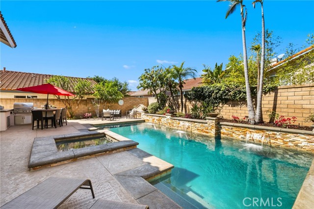 Welcome to this beautifully upgraded home in the heart of Lake Forest, where comfort, style, and an elevated Southern California lifestyle come together. Soaring vaulted ceilings, luxury vinyl plank flooring, and recessed lighting create a bright and inviting atmosphere throughout. The spacious living room features a stately fireplace and flows seamlessly into the remodeled kitchen, complete with a large center island, granite countertops, white cabinetry, and stainless steel appliances—perfect for both everyday living and entertaining. Step outside through sliding doors to your private backyard oasis, designed for unforgettable gatherings with a sparkling pool and spa, BBQ island with bar seating, and a cozy firepit. The versatile floorplan includes a main floor bedroom and full bathroom, ideal for guests or multi-generational living, as well as a convenient laundry room with direct access to the two-car garage. Upstairs, enjoy a huge bonus room with custom built-ins, perfect for a media room, office, or play space. The primary suite offers a private retreat with its own fireplace and an ensuite bathroom featuring dual sinks, a soaking tub, and a walk-in shower. Two additional bedrooms share a full hall bathroom. Ideally located just minutes from the Irvine Spectrum, with easy freeway access, nearby hiking and biking trails, and close proximity to the train station, this home offers exceptional convenience for both work and play. As part of the exclusive Lake Forest II Sun & Sail Club, residents enjoy access to an incredible array of amenities, including multiple pools (lap, diving, wading, and exercise), a spa, a state-of-the-art fitness center with scenic lake views, tennis and pickleball courts, basketball courts, sand volleyball, playgrounds, picnic and BBQ areas, and an amphitheater by the lake—offering a lifestyle that truly has it all.