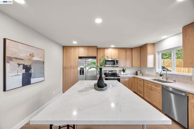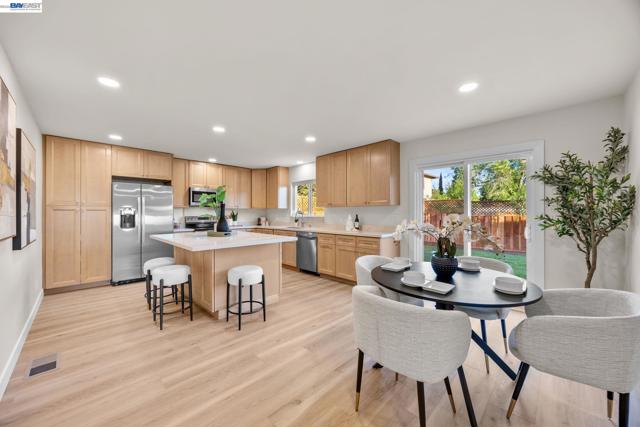 Welcome to a home that feels easy the moment you arrive. Beautifully remodeled and move-in ready, this 3-bedroom, 2-bath home offers warm, light-filled living space in a quiet Livermore neighborhood just under a mile from historic downtown. Inside, thoughtful updates include flooring, fresh interior and exterior paint, updated cabinetry, countertops, appliances, remodeled bathrooms, and updated plumbing and electrical. The spacious kitchen is anchored by a large island with bar seating on two sides, creating the perfect space for morning coffee, casual meals, homework, and conversation. The main living area is open, bright, and welcoming, with large windows that fill the home with natural light. Each bedroom includes two closets for exceptional storage. Outside, the private backyard offers lawn and patio space for entertaining, play, or relaxing at the end of the day. Minutes from I-580 and the ACE Train, and less than a mile from historic downtown Livermore, this home offers comfort, convenience, and an easy lifestyle to enjoy.