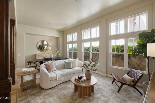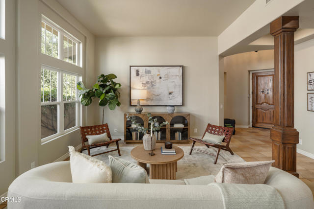 This stunning and rare single-story estate seamlessly blends elegance and comfort, while offering a serene retreat with stunning city light and mountain views. Inside, you'll find an inviting rotunda entry that leads to open hallways and spacious living and dining areas, all bathed in natural light from floor-to-ceiling windows. Soaring ceilings create a sense of warmth and sophistication, complemented by tile throughout, including in the bedrooms and bathrooms. The gourmet kitchen is a chef's delight, featuring brand new appliances, refinished cabinetry, a large central prep island, quartz countertops, and a sunlit breakfast nook that overlooks the rear patio. The space flows effortlessly into the expansive great room, perfect for hosting gatherings or enjoying cozy evenings at home. This home boasts three well-appointed bedrooms, including a luxurious primary suite with double doors that open to the tranquil backyard--a perfect spot to relax and unwind. One of the bedrooms is currently utilized as a versatile office/den, but can be converted back into a bedroom to suit your needs. All the things we love about La Vina remain a cornerstone of this cherished community. It offers a gated environment with amenities like a playground, community pool, and serene walking paths that meander through meditative Oak tree groves. Although recent fires have impacted some of these areas, the community is committed to restoring them. La Vina, situated at the top of Altadena, remains a beautiful haven, just minutes away from Old Pasadena, the Rose Bowl, and only 15 miles from DTLA. Welcome home!