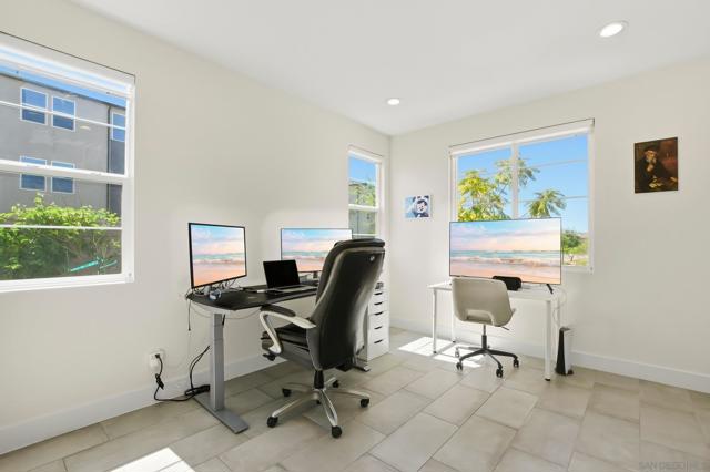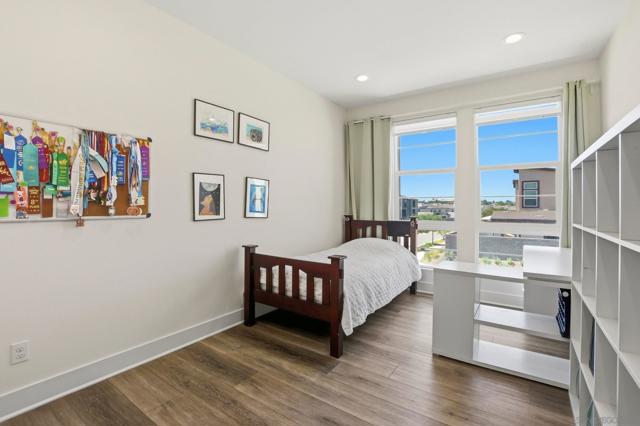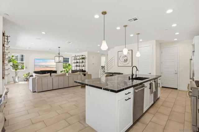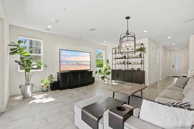 Located within the 3Roots master planned community, this modern Lotus Plan 1 home offers a seamless blend of functional design and high quality finishes. The open concept great room features a large center island, and durable luxury vinyl plank flooring throughout the main level. A rare entry level bedroom and full bathroom provide flexibility for guests or a home office, while the second floor opens to a versatile loft and a spacious primary suite with a private balcony. The backyard features a low maintenance yard finished with interlocking concrete pavers. This residence includes a tankless water heater for enhanced comfort and energy efficiency. Residents enjoy exclusive access to the 3Roots Fit and Recreation Center, featuring fitness facilities and pools, all situated near the major employers of Sorrento Mesa.