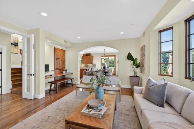 This French Country inspired residence offers rare serenity just minutes from top Cupertino schools, shopping, and major employers. A scenic 20 minute drive from Silicon Valley brings you to a private hilltop retreat nestled on ~10 acres along an exclusive road. Enjoy breathtaking ~270° panoramic views of the San Francisco Bay and the Santa Clara Valley - lush green hills by day, shimmering city lights by night, and a stunning above the clouds vantage when valley fog settles below. The 4bd/3ba home features a light-filled floor plan, main-level bed/bath, and an upstairs primary suite with a walk-in closet and spa-like bath. The kitchen offers premium stainless appliances, abudant cabinetry and countertop space. The main level includes a private office area and a sunroom perfect for a reading lounge or inspired workspace . The dining area opens up to the backyard which is ideal for entertaining. An oversized 3-car garage with abundant storage and leased solar complete the offering. Near acclaimed wineries including Ridge Vineyards and over 22K acres of hiking & 10K acres of biking trails, this home offers a perfect blend of luxury and an active lifestyle. Close to Cupertino schools and major employers. Experience refined living where the journey itself becomes part of the reward.