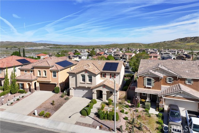 Tucked within the thoughtfully designed community of Ana Verde, this former model home at 2721 Goldenrain Street offers a refined blend of efficiency, comfort, and intentional design. Enhanced by fully paid-off solar, the home delivers both sustainability and long-term savings—an increasingly valuable asset in today’s market. Originally crafted to showcase the builder’s vision, the former model home is distinguished by its elevated level of finish and attention to detail. Premium features are evident throughout, from upgraded cabinetry and designer-selected surfaces to refined fixtures, custom accents, and thoughtfully integrated built-ins. Every element was curated to reflect both style and function, creating a living environment that feels both polished and inviting. Natural light moves effortlessly through the home, enhancing the carefully selected finishes and creating a sense of openness and balance. The layout is both functional and graceful, designed to support everyday living while offering spaces for gathering, entertaining, and quiet retreat. What truly distinguishes this property is its elevated perspective. The backyard opens to expansive, unobstructed views of the surrounding hills and high desert landscape, offering a dynamic backdrop that evolves throughout the day, from soft, tranquil mornings to vivid desert sunsets. It’s a setting that invites both reflection and connection. Beyond the home, Ana Verde is defined by lifestyle. Residents enjoy access to scenic walking trails, beautifully maintained parks, and a community-centered environment, all complemented by highly regarded local schools. The location also offers the convenience of being just minutes from nearby shopping centers, dining, and everyday essentials, blending tranquility with accessibility. This is more than a home, it is a thoughtfully designed model of modern living, where premium finishes, natural beauty, and everyday convenience converge in one of West Palmdale’s most sought-after communities.