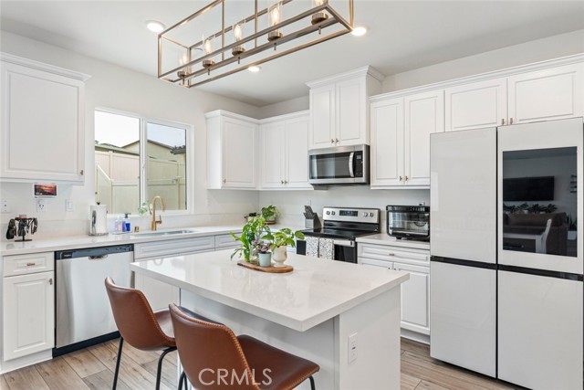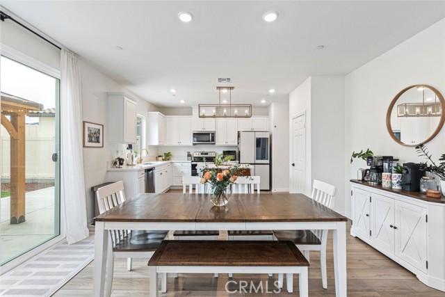 Nearly new 5 bedroom home in Terracina with a fully finished backyard and downstairs bedroom. Move-in ready and nearly new, this spacious 5 bedroom, 3 bathroom home offers over 2,500 sq ft of thoughtfully designed living space in the growing Terracina community of Lake Elsinore. This energy efficient home combines modern construction, functional layout, and stylish upgrades that today’s buyers are searching for. The open concept floor plan creates seamless flow between the living room, dining area, and upgraded kitchen, making it ideal for everyday living and entertaining. The kitchen features quartz countertops, a large center island, abundant cabinetry, and energy efficient stainless steel appliances. Luxury vinyl plank flooring, LED lighting throughout, and 9 foot ceilings on both the first and second floors enhance the bright and modern feel of the home. A highly desirable downstairs bedroom and bathroom provide flexibility for guests, multi generational living, or a private home office. Upstairs you will find four additional bedrooms plus a spacious loft that can easily function as a media room, playroom, or second living area. The oversized end bedrooms offer flexible space for a home gym, office, or hobby room. The spacious primary suite includes dual sinks, a large vanity, and generous closet space. Additional features include a dual zone thermostat allowing separate climate control for upstairs and downstairs, plus a fresh air continuous fan system designed to improve comfort and air circulation year round. Step outside to a turnkey backyard designed for low maintenance living and entertaining. The yard features artificial turf, extensive concrete work, a pergola covered patio area, and extended parking space. This outdoor setup creates an entertainer’s backyard that is ready to enjoy without the expense or wait of completing new construction landscaping. Located within the desirable Terracina community, the home is close to parks, schools, shopping, and commuter routes, while offering the benefits of newer construction without the builder wait time. This rare 5 bedroom layout, combined with modern upgrades and a finished backyard, makes this home an exceptional opportunity for buyers looking for space, flexibility, and move in ready convenience.